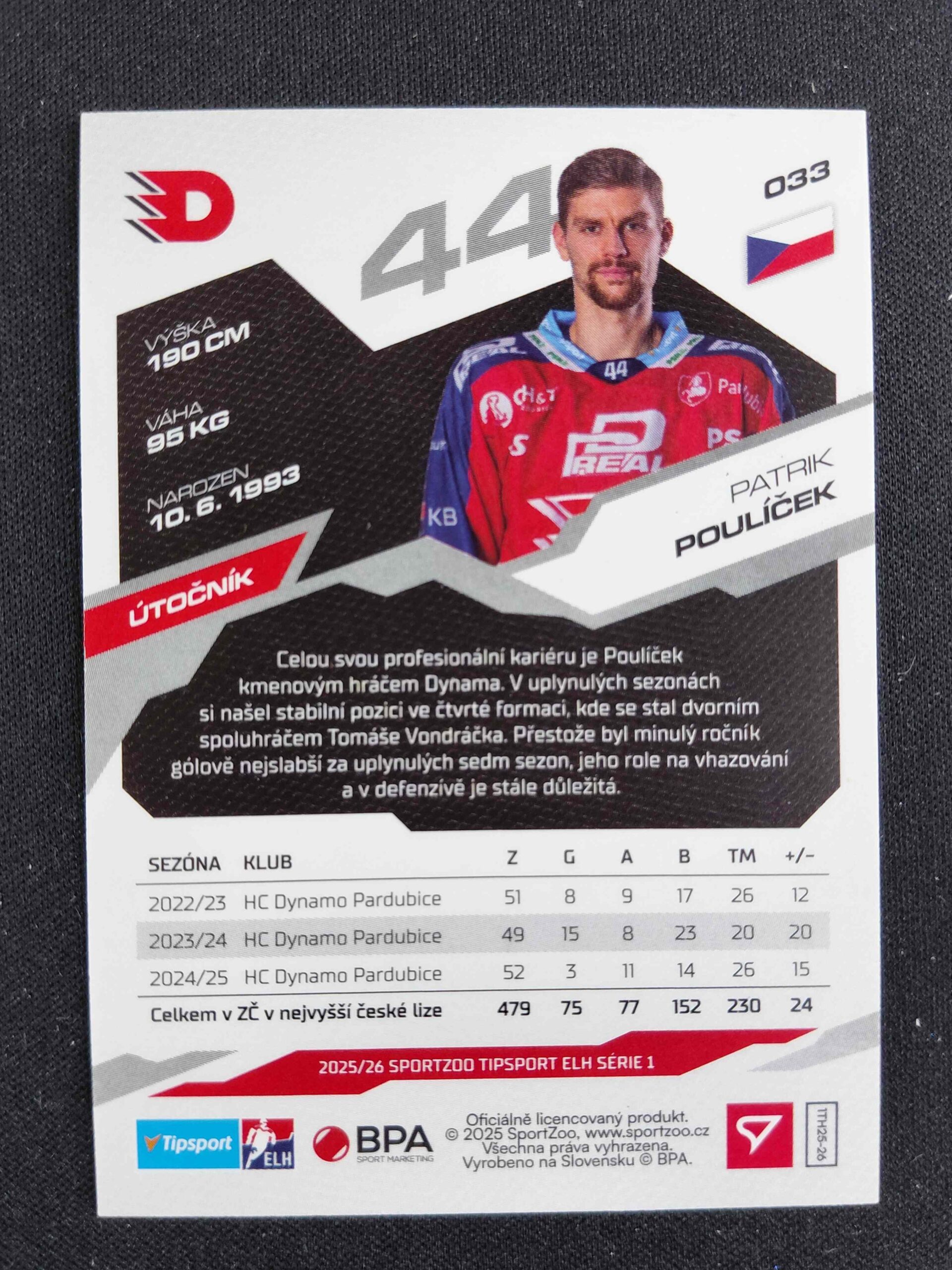 Sběratelská karta 2025/2026 Sportzoo Serie 1 Emerald Green 33 Patrik Poulíček Paralel 10/50