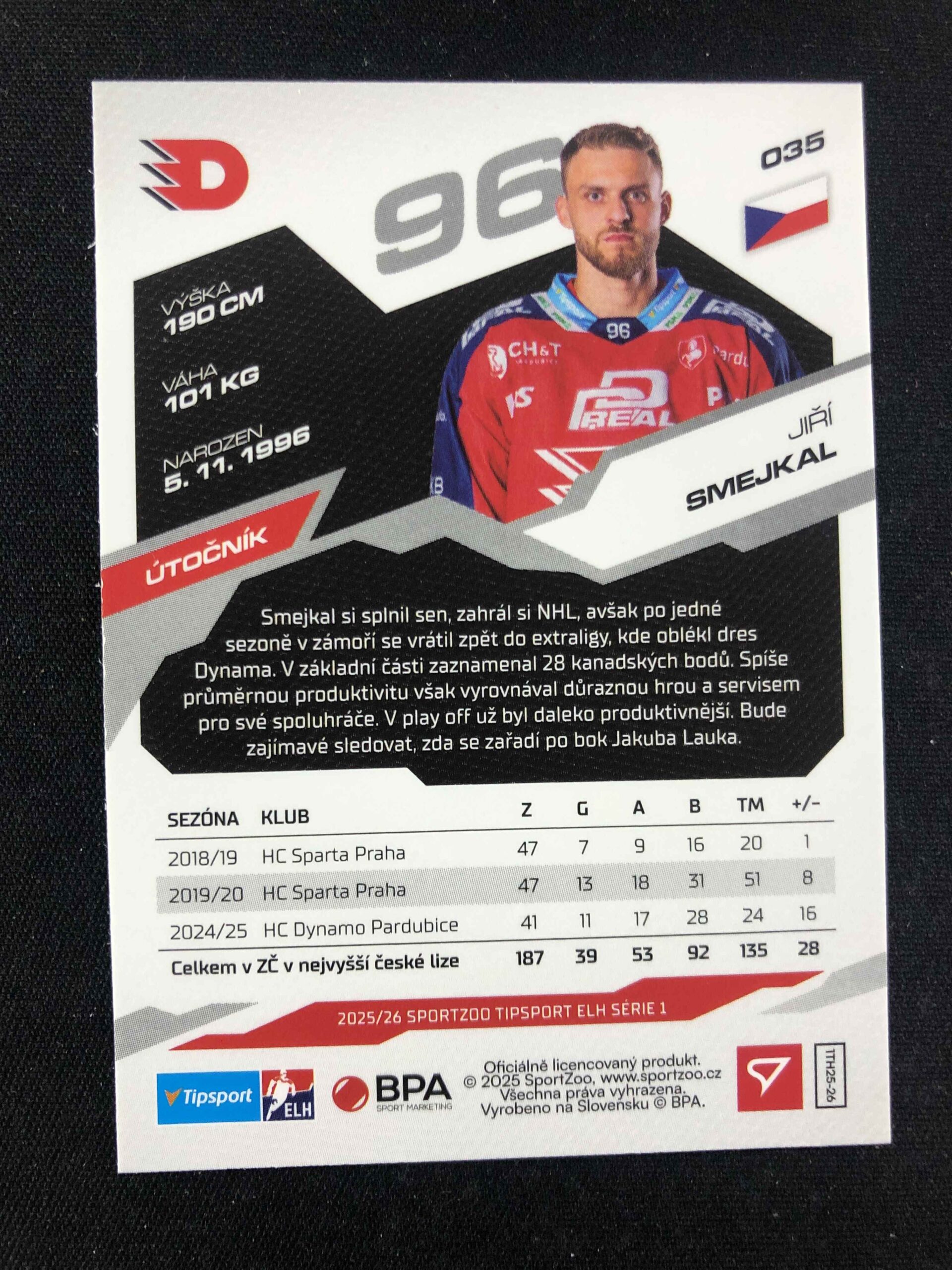 Sběratelská karta 2025/2026 Sportzoo Serie 1 Emerald Green 35 Jiří Smejkal Paralel 44/50
