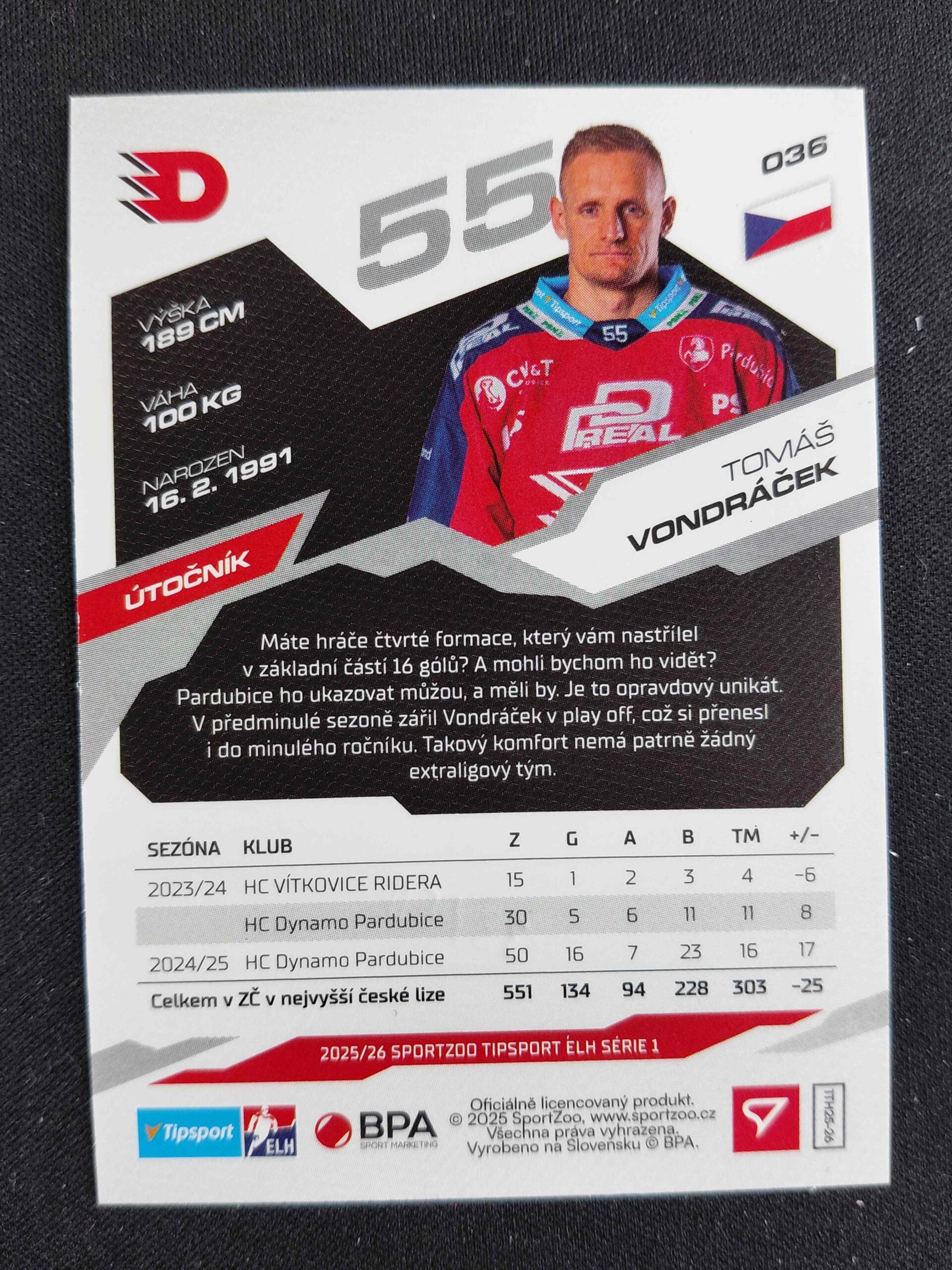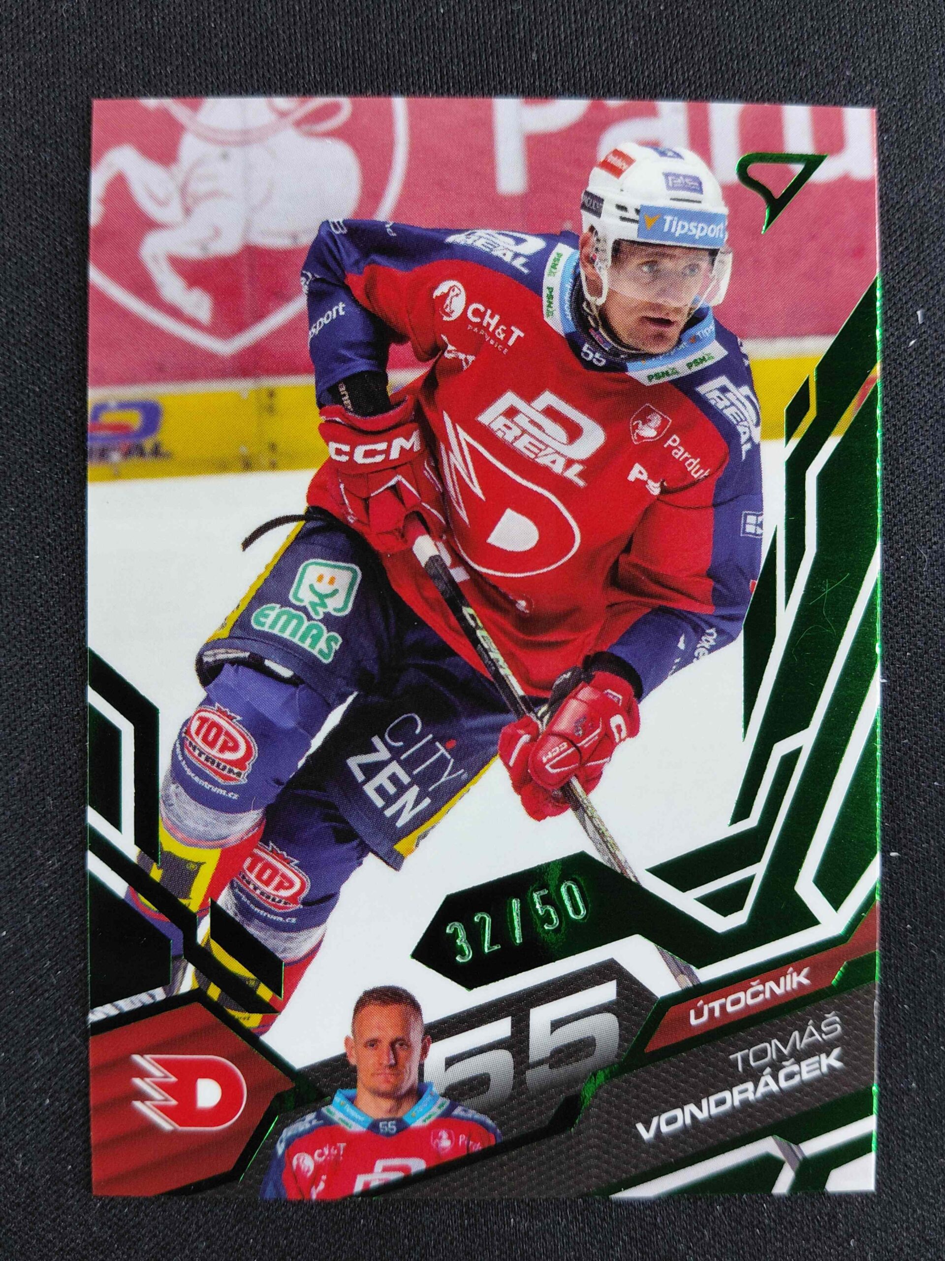 Sběratelská karta 2025/2026 Sportzoo Serie 1 Emerald Green 36 Tomáš Vondráček Paralel 32/50