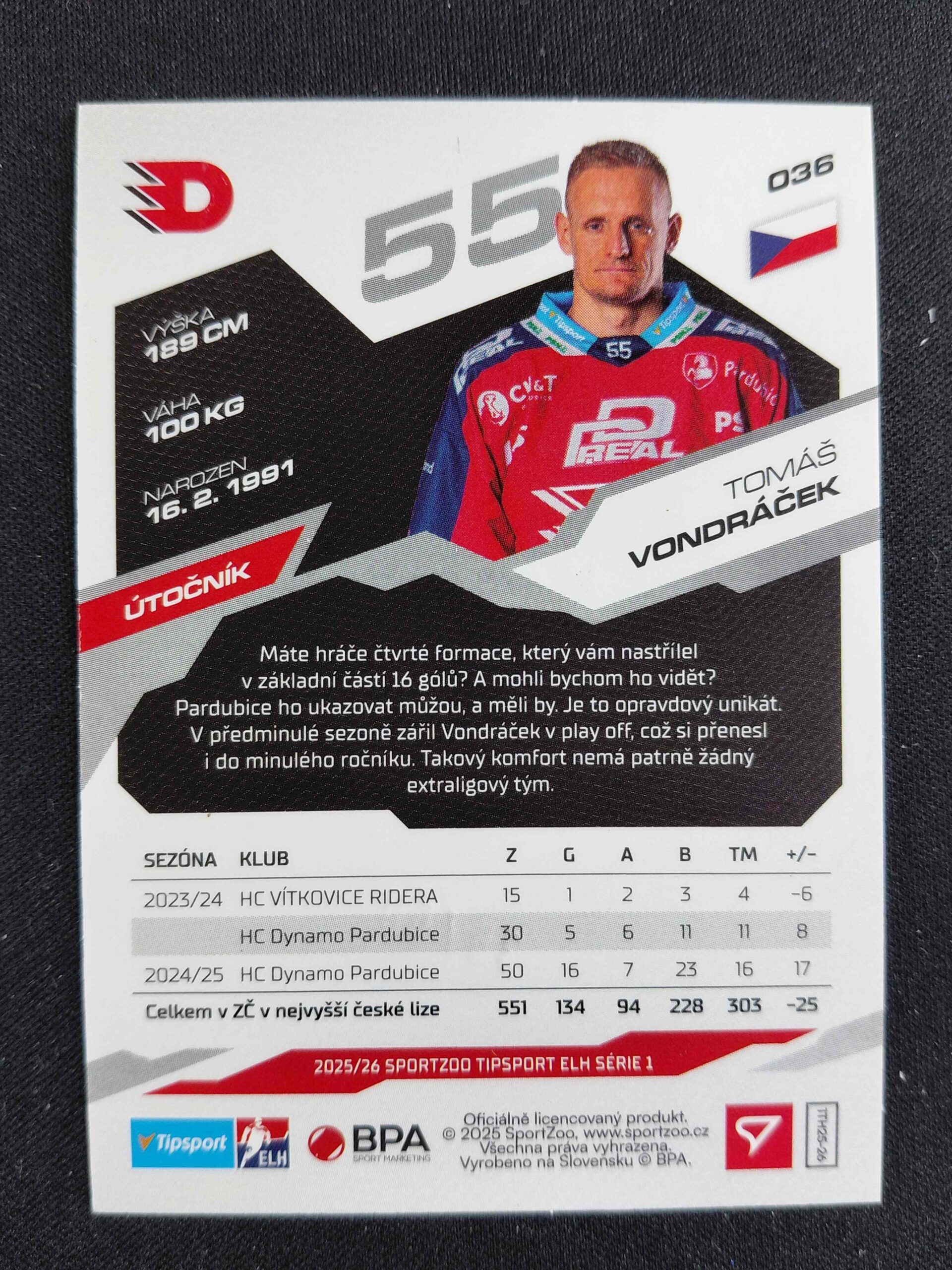 Sběratelská karta 2025/2026 Sportzoo Serie 1 Emerald Green 36 Tomáš Vondráček Paralel 35/50