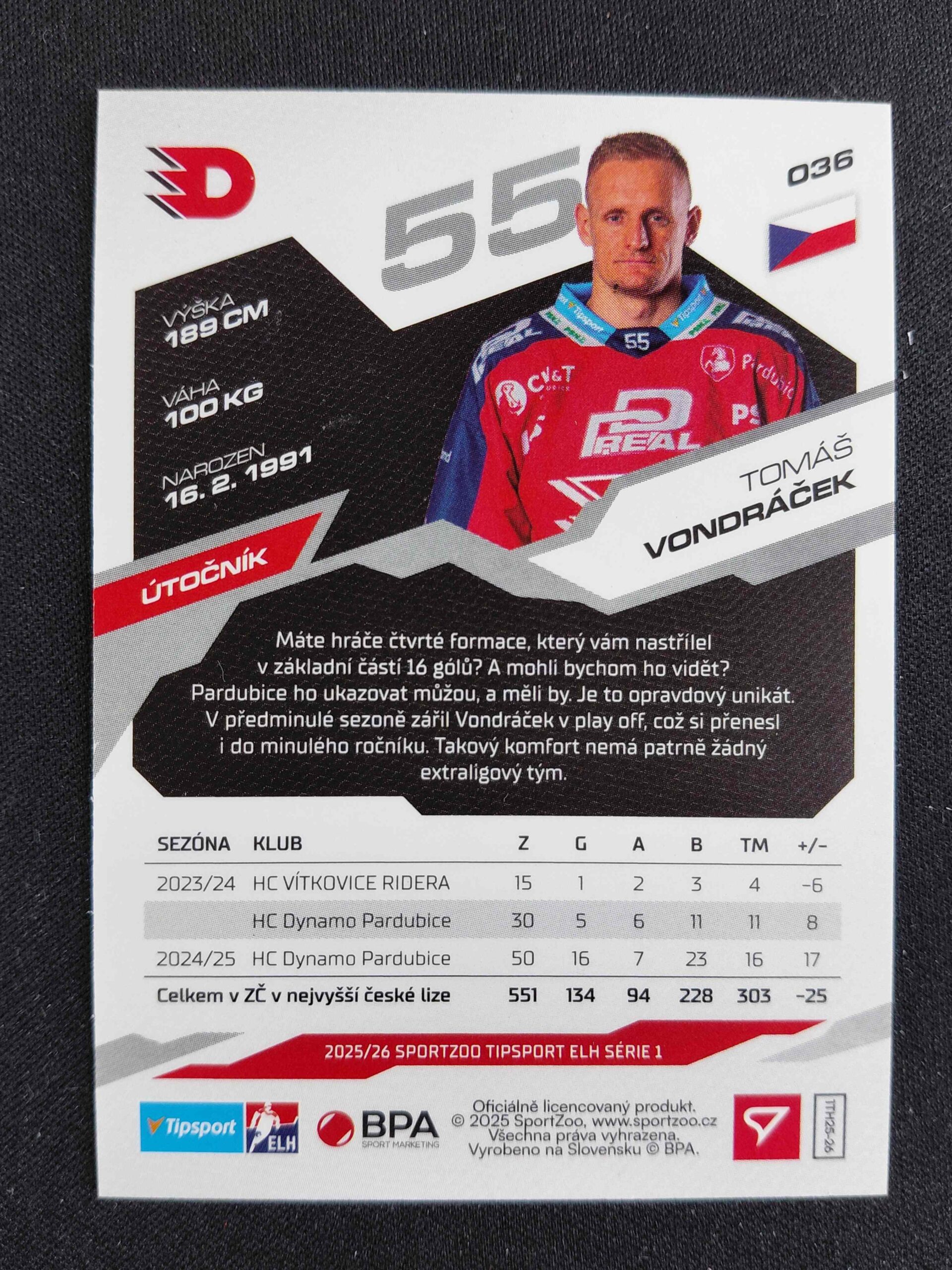 Sběratelská karta 2025/2026 Sportzoo Serie 1 Emerald Green 36 Tomáš Vondráček Paralel 48/50