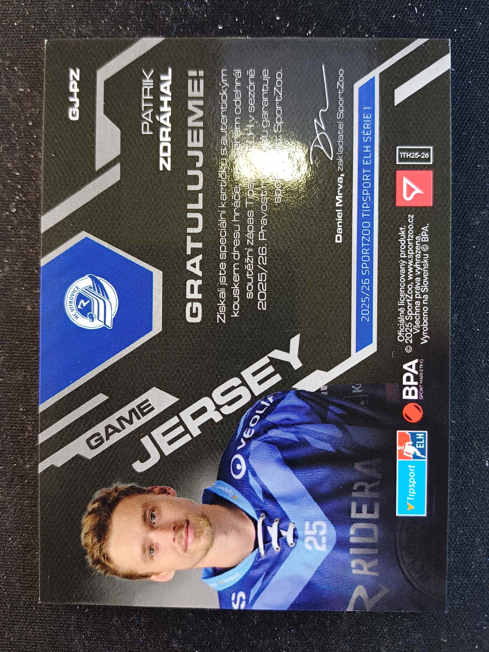 Sběratelská karta 2025/2026 Sportzoo Serie 1 Game Jersey GJ-PZ Patrik Zdráhal Jersey 14/85