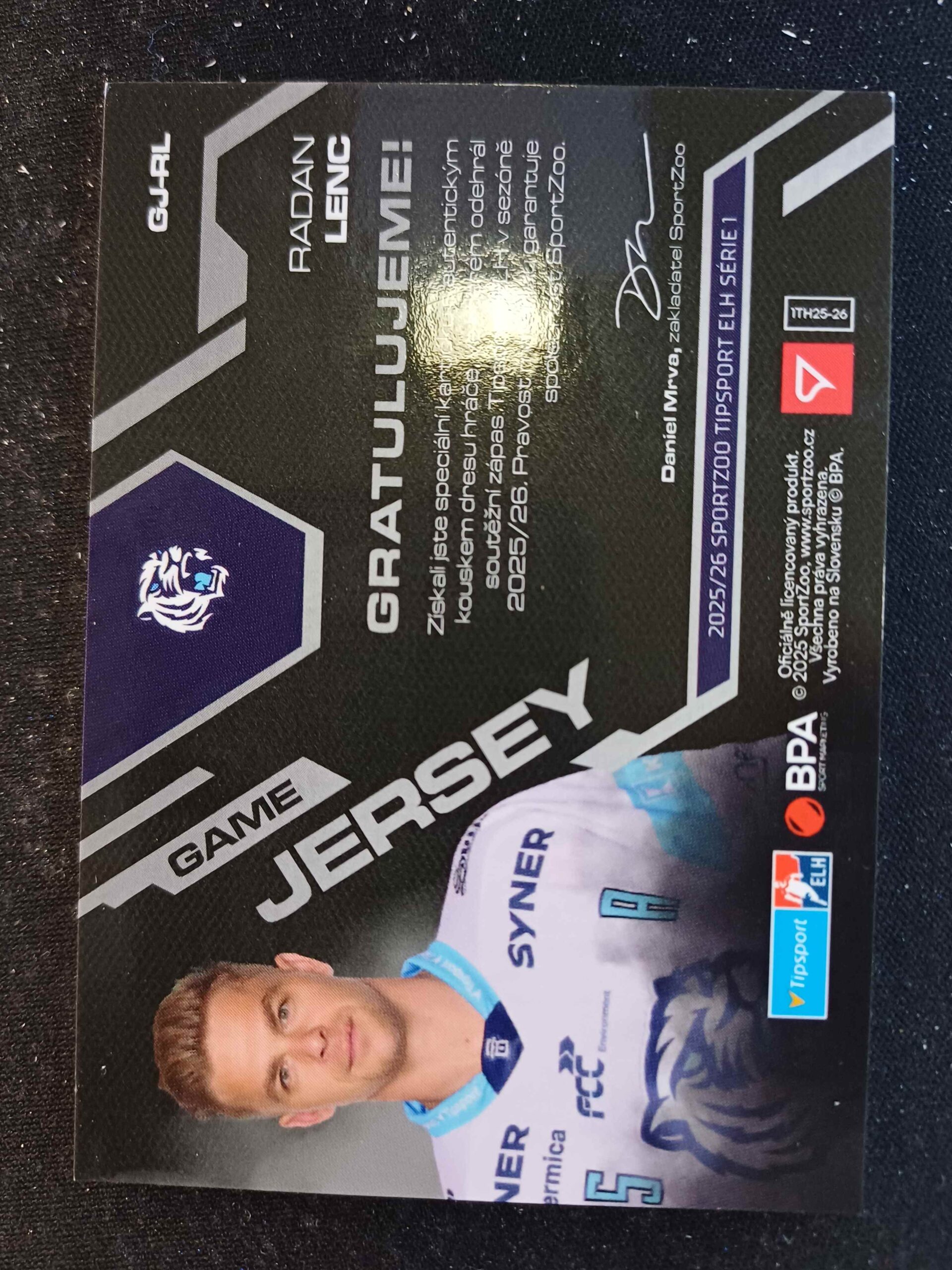 Sběratelská karta 2025/2026 Sportzoo Serie 1 Game Jersey GJ-RL Radan Lenc Jersey 27/85