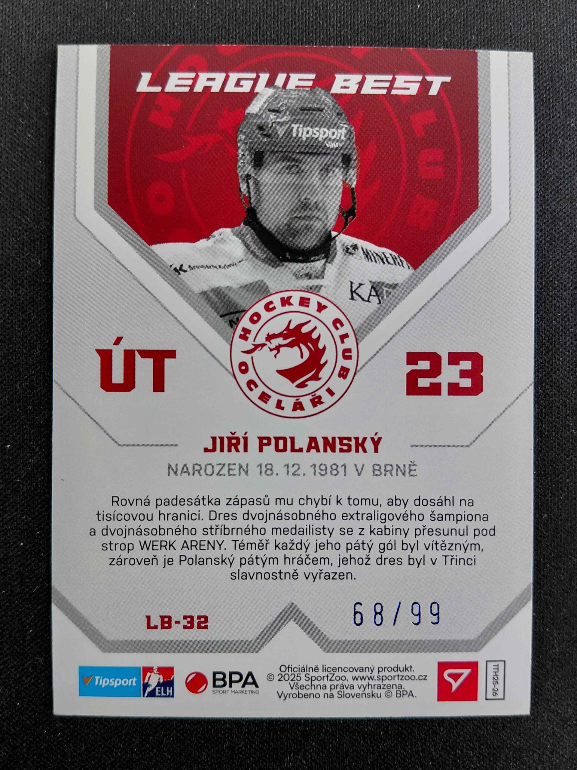 2025/2026 Sportzoo Serie 1 League Best Cerulean Blue LB-32 Jiří Polanský Inzert 68/99