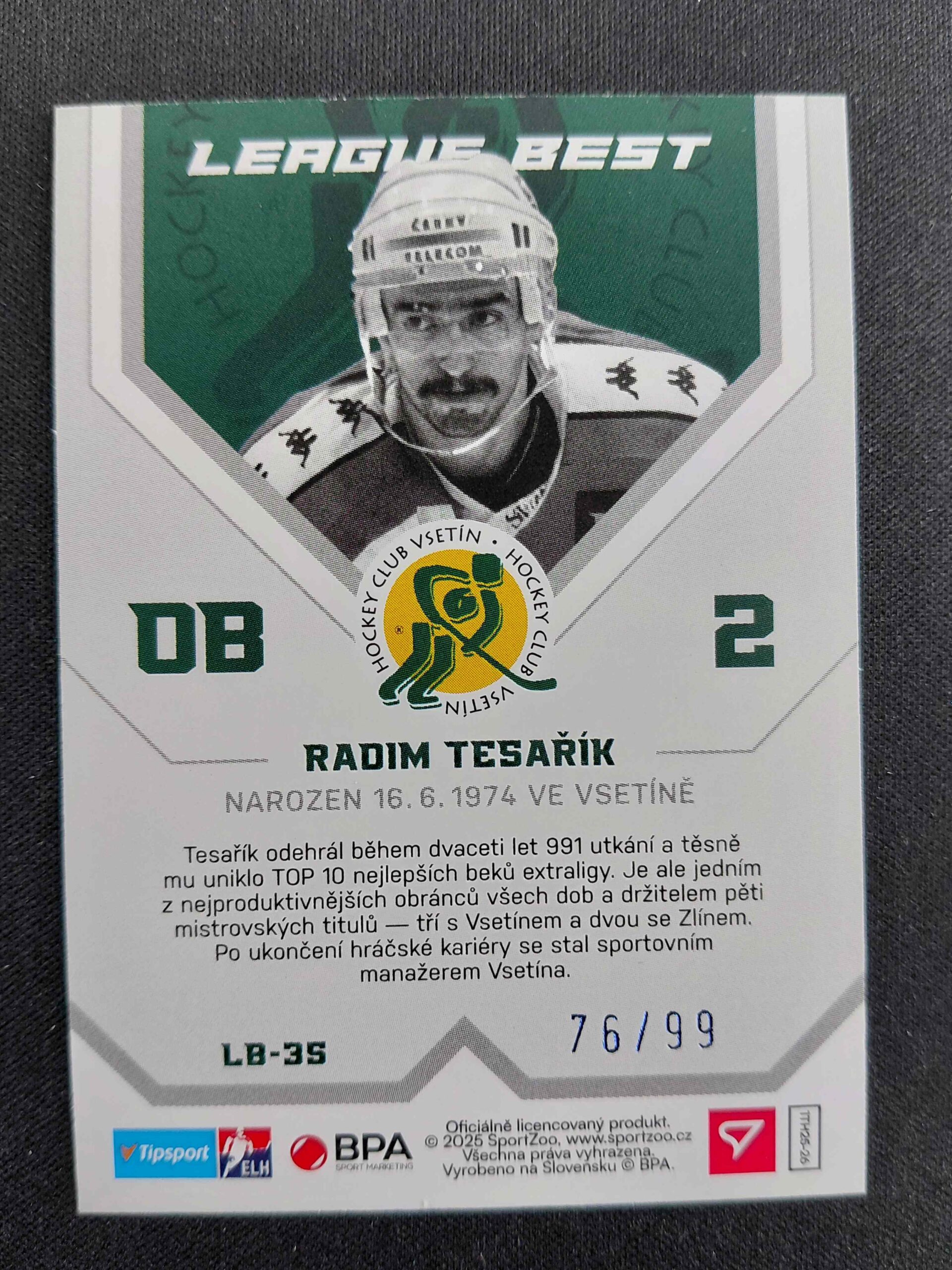 Sběratelská karta 2025/2026 Sportzoo Serie 1 League Best Cerulean Blue LB-35 Radim Tesařík Inzert 76/99
