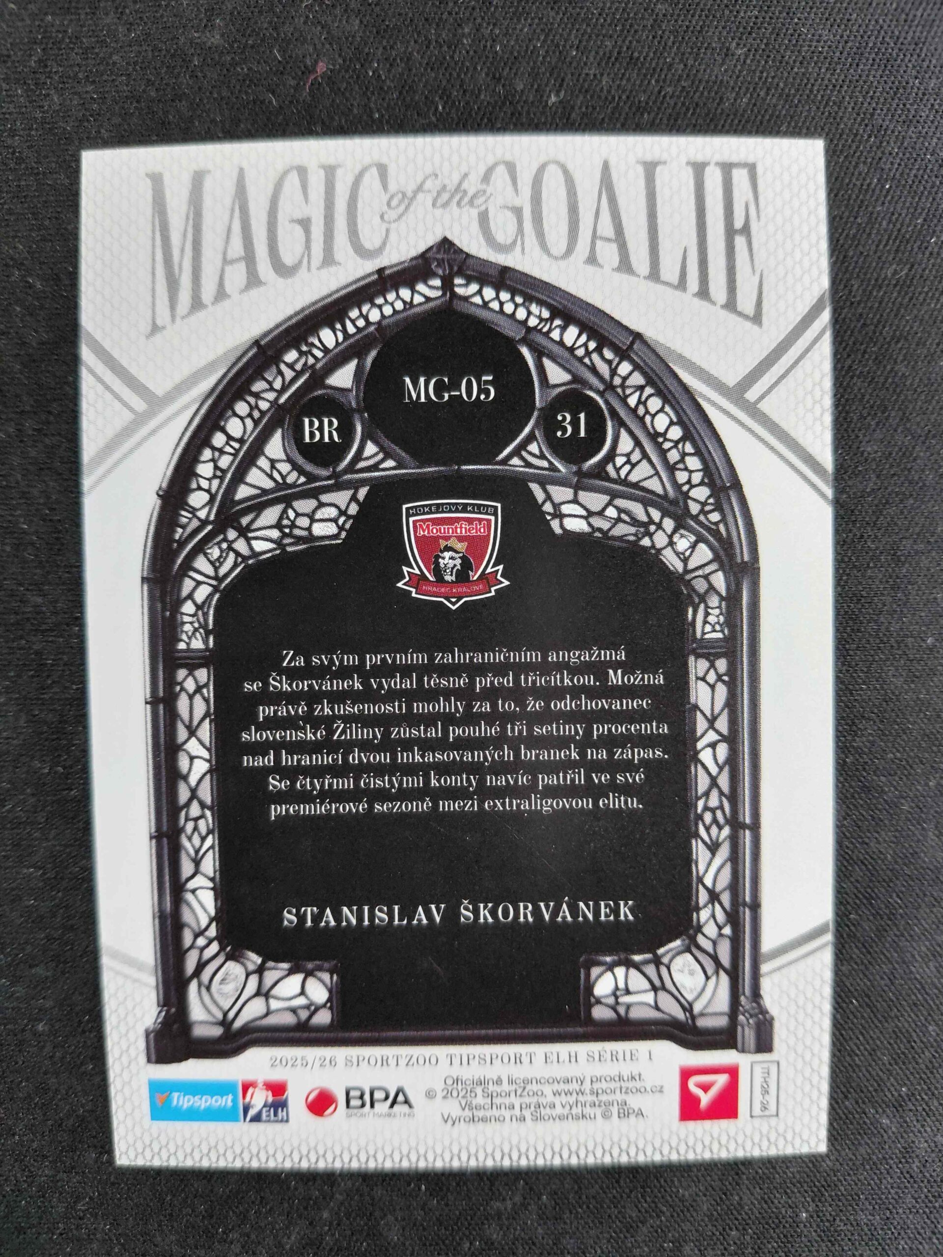 Sběratelská karta 2025/2026 Sportzoo Serie 1 Magic of the Goalie MG-05 Stanislav Škorvánek Inzert