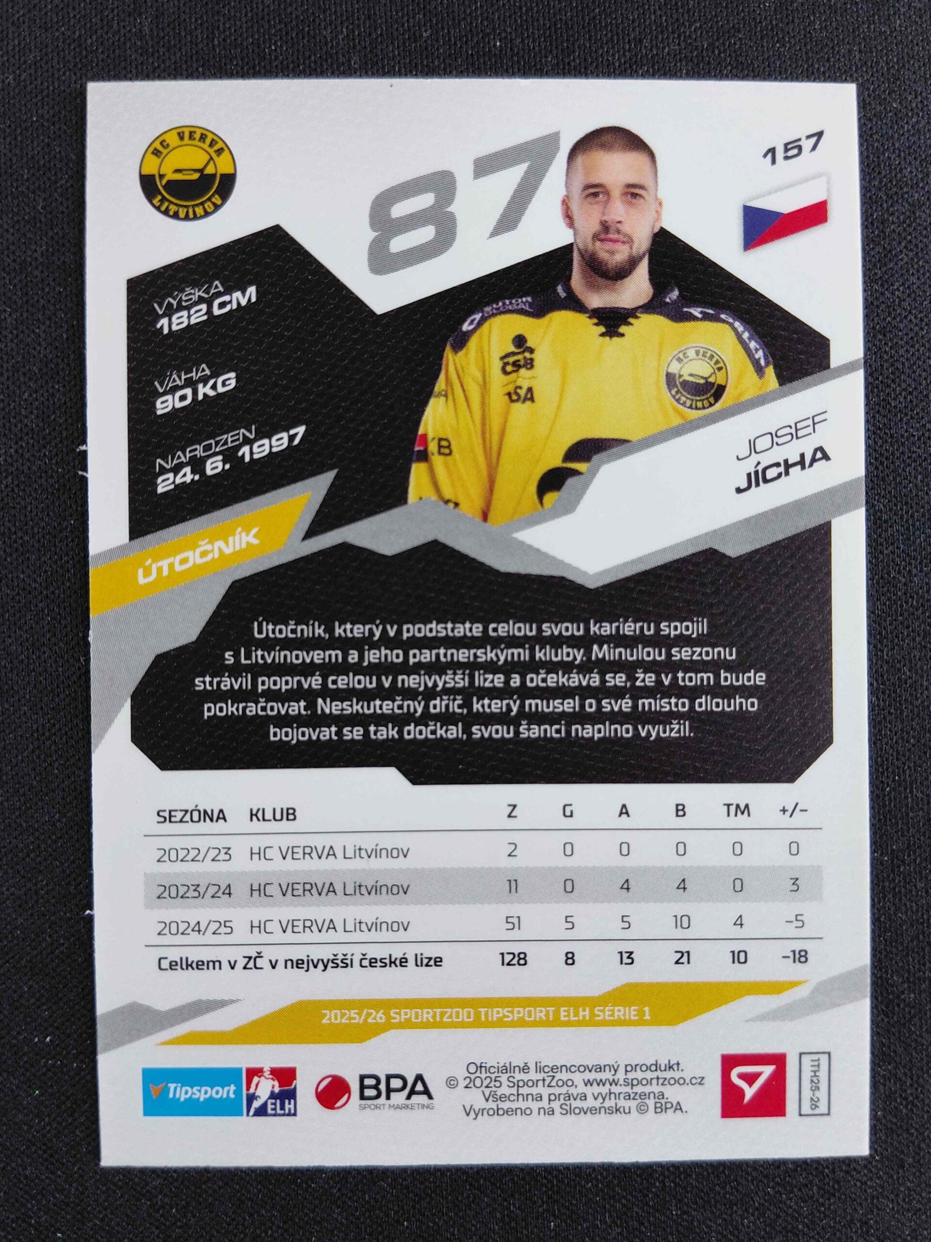 Sběratelská karta 2025/2026 Sportzoo Serie 1 Ruby Red 157 Josef Jícha Paralel 05/25