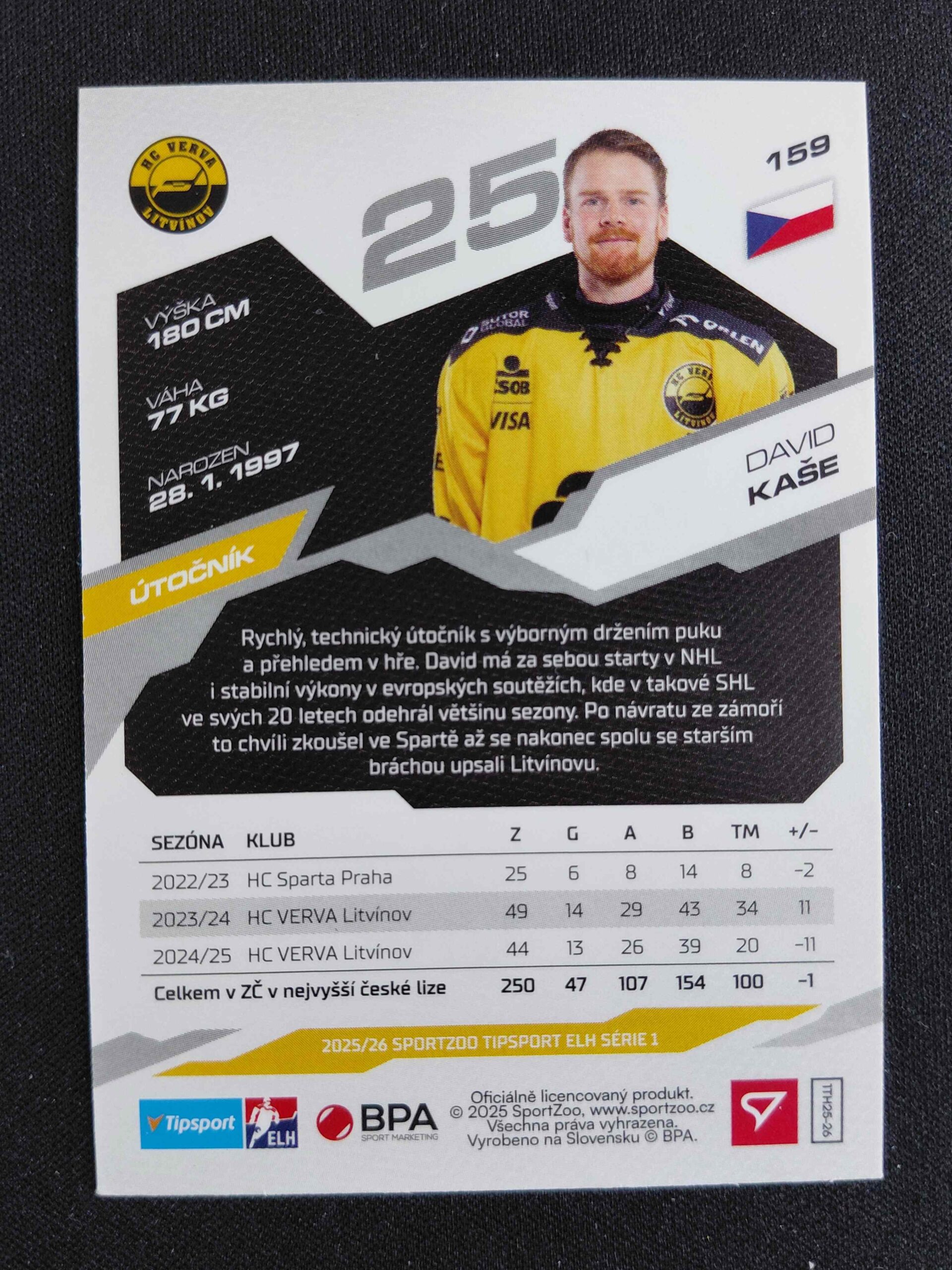 Sběratelská karta 2025/2026 Sportzoo Serie 1 Ruby Red 159 David Kaše Paralel 25/25
