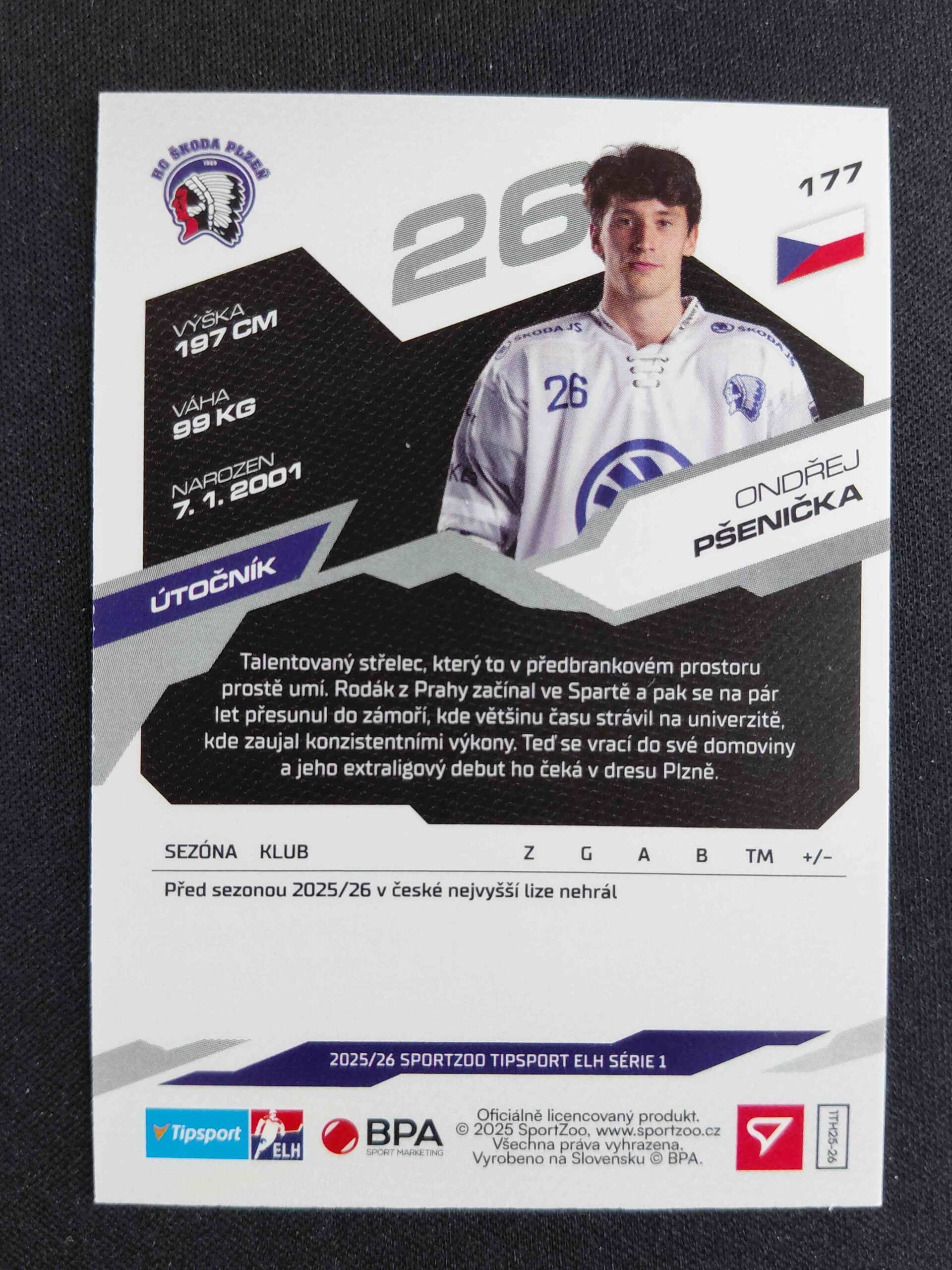 Sběratelská karta 2025/2026 Sportzoo Serie 1 Ruby Red 177 Ondřej Pšenička Paralel 21/25