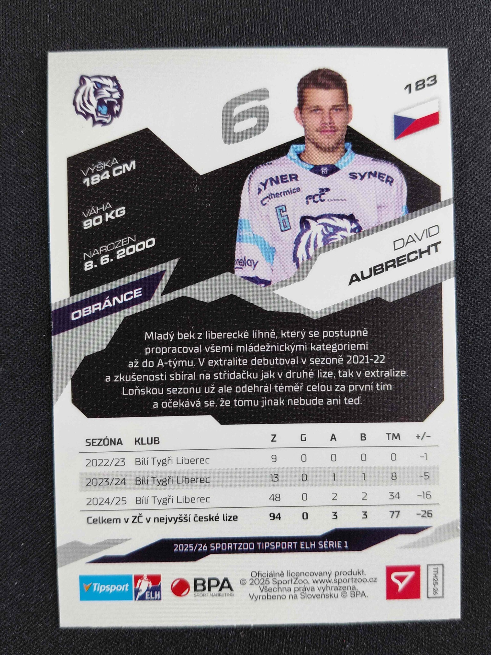 Sběratelská karta 2025/2026 Sportzoo Serie 1 Ruby Red 183 David Aubrecht Paralel 19/25
