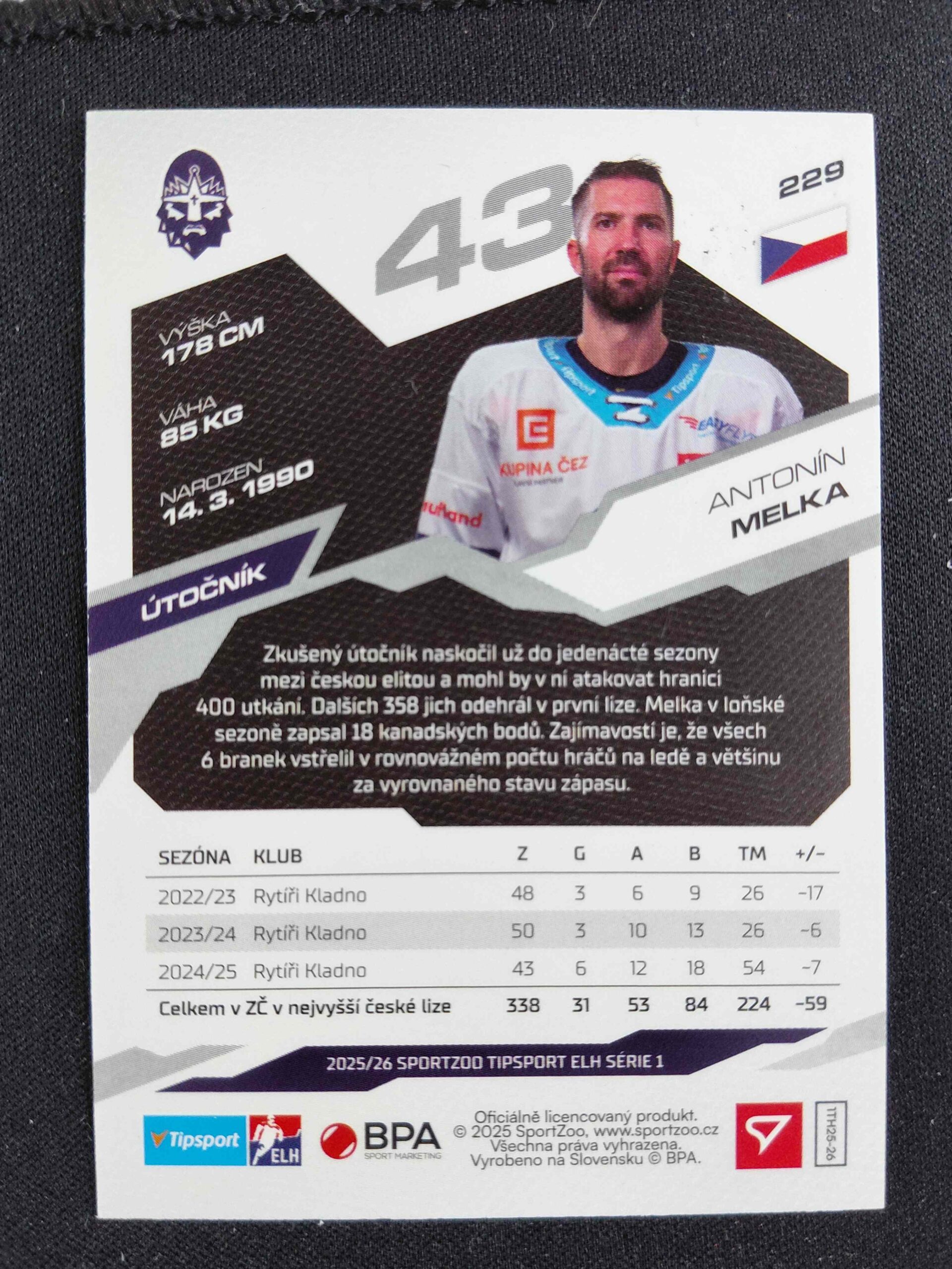 Sběratelská karta 2025/2026 Sportzoo Serie 1 Ruby Red 229 Antonín Melka Paralel 06/25