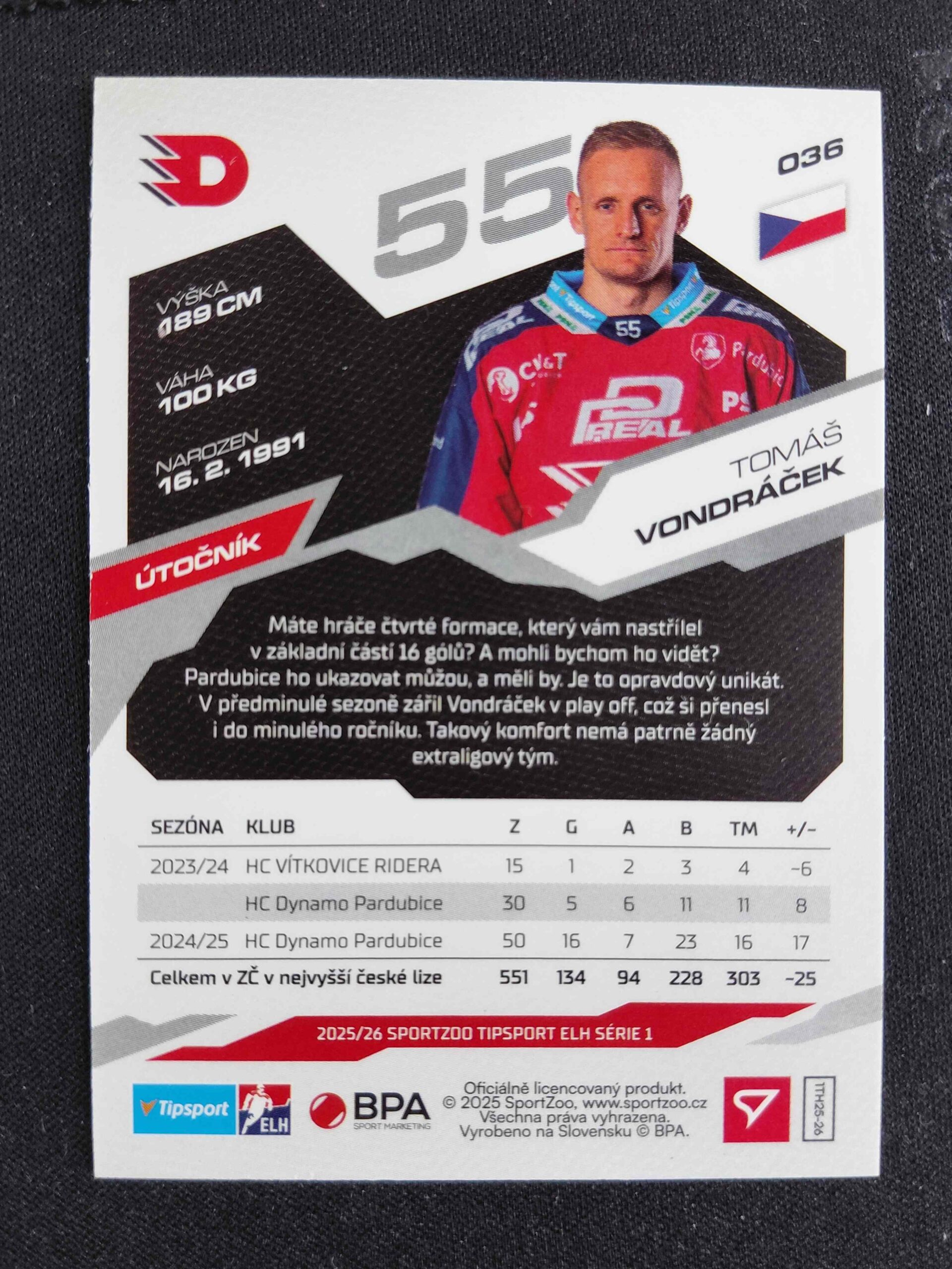 Sběratelská karta 2025/2026 Sportzoo Serie 1 Ruby Red 36 Tomáš Vondráček Paralel 13/25