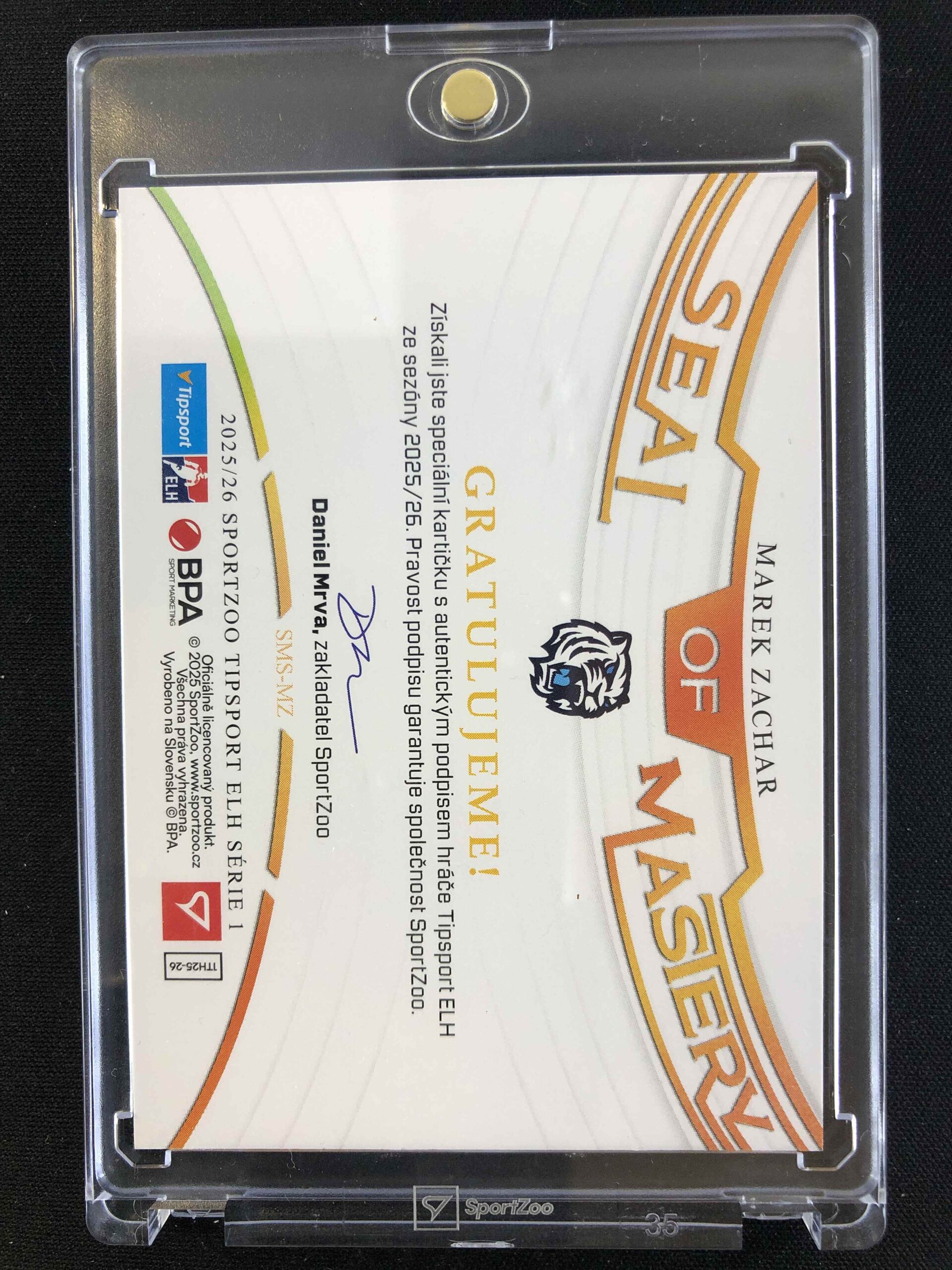 Sběratelská karta 2025/2026 Sportzoo Serie 1 Seal of Mastery Gold AUTO SMS-MZ Marek Zachar AUTO 22/35
