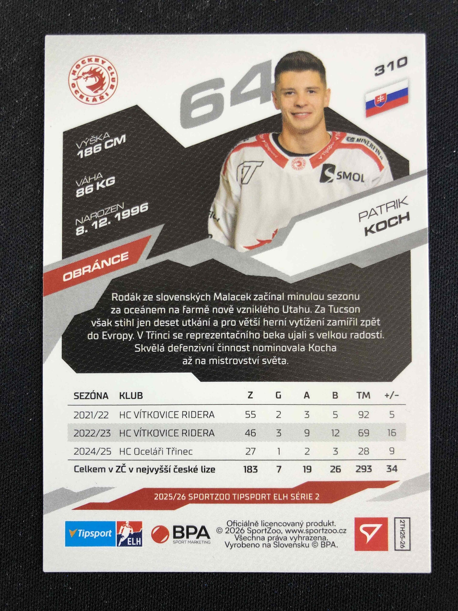 Sběratelská karta 2025/2026 Sportzoo Serie 2 Azure Blue 310 Patrik Koch Paralel