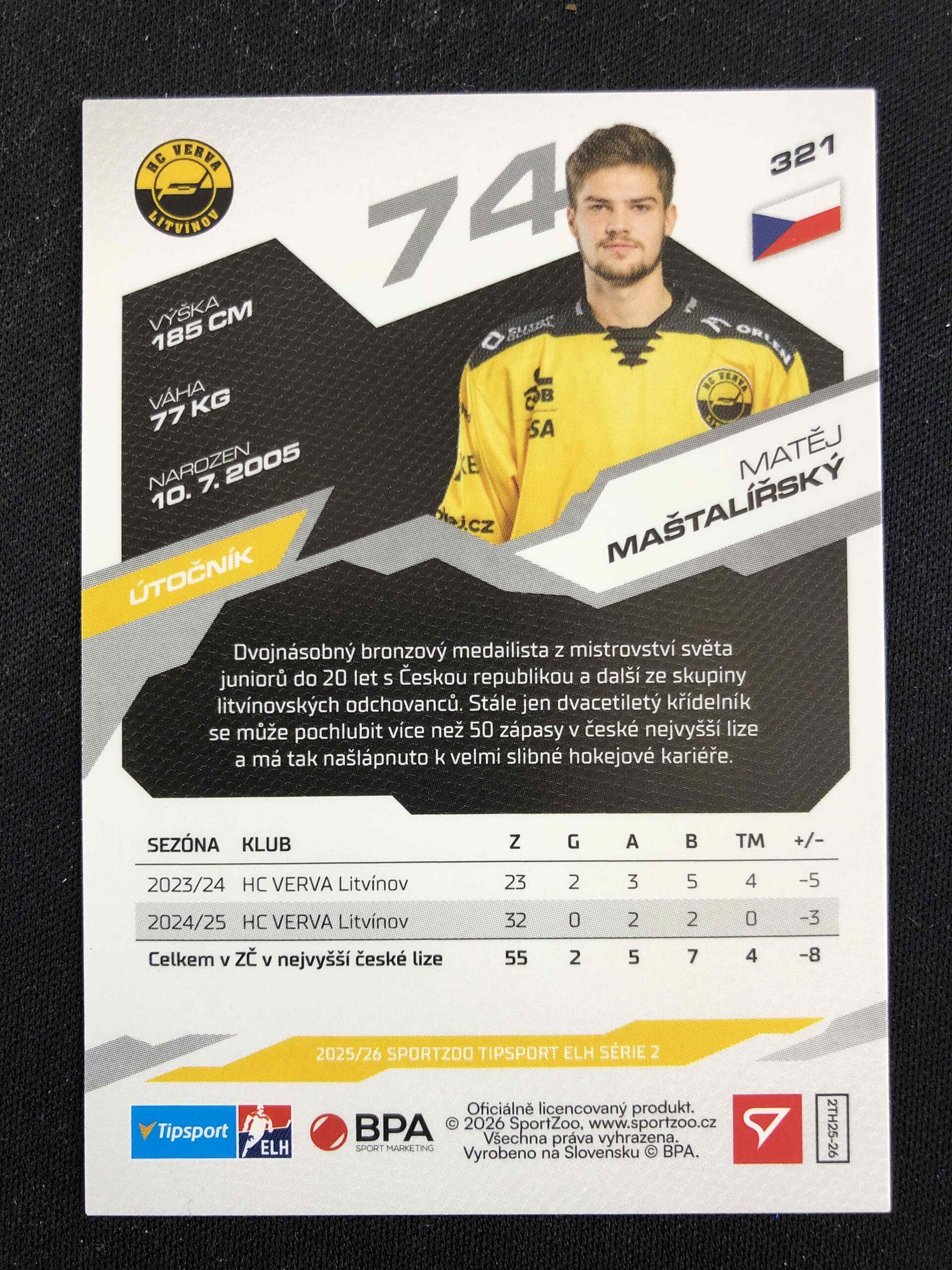 Sběratelská karta 2025/2026 Sportzoo Serie 2 Azure Blue 321 Matěj Maštalířský Paralel