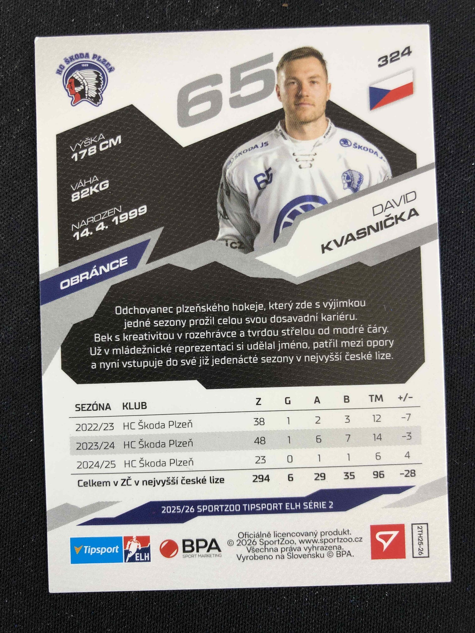 Sběratelská karta 2025/2026 Sportzoo Serie 2 Azure Blue 324 David Kvasnička Paralel