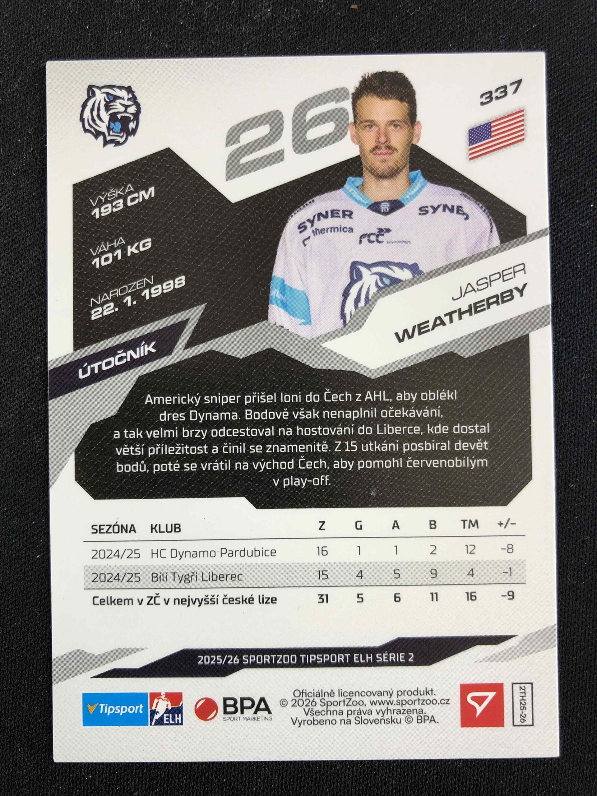 Sběratelská karta 2025/2026 Sportzoo Serie 2 Azure Blue 337 Jasper Weatherby Paralel