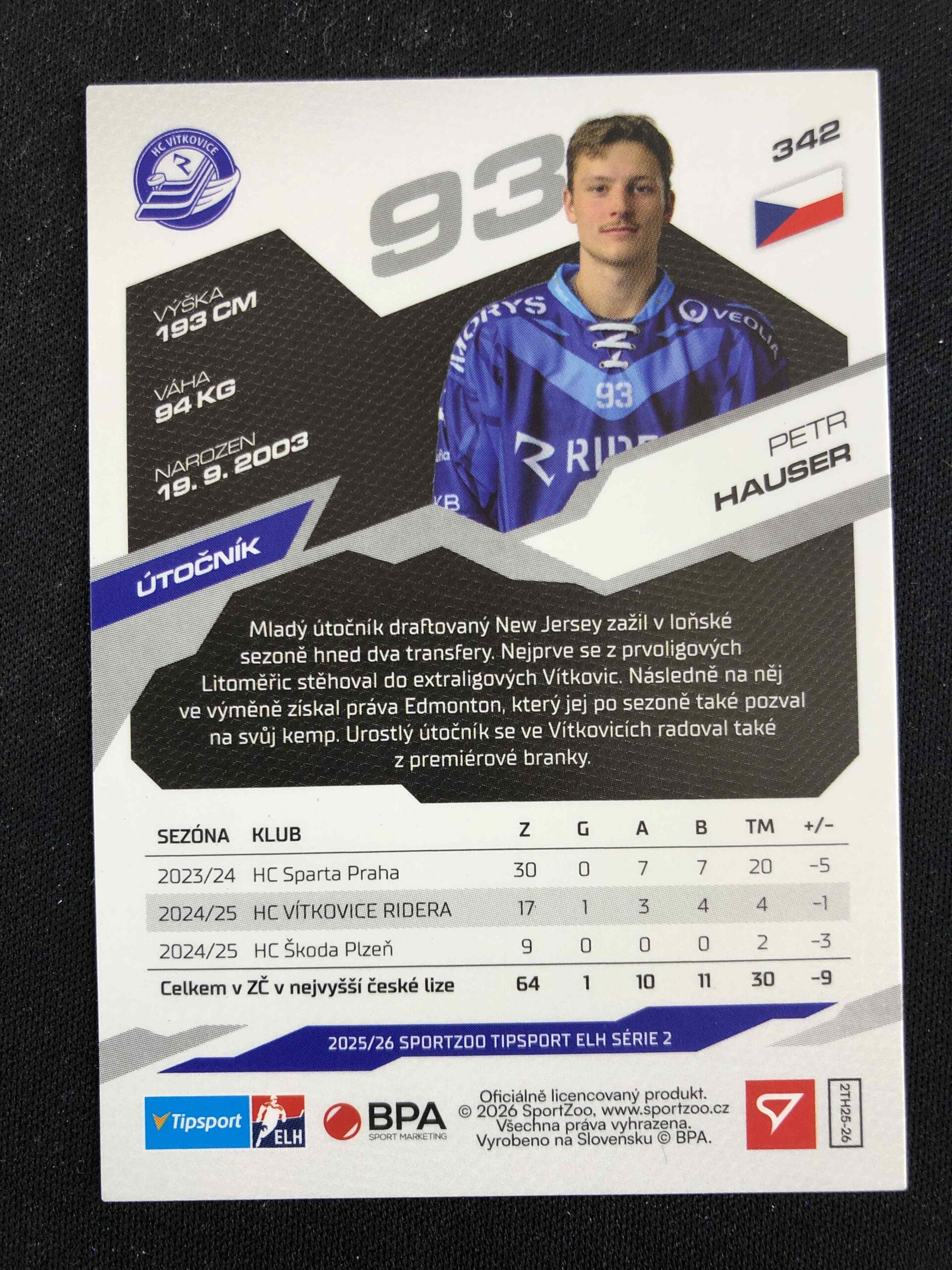Sběratelská karta 2025/2026 Sportzoo Serie 2 Azure Blue 342 Petr Hauser Paralel
