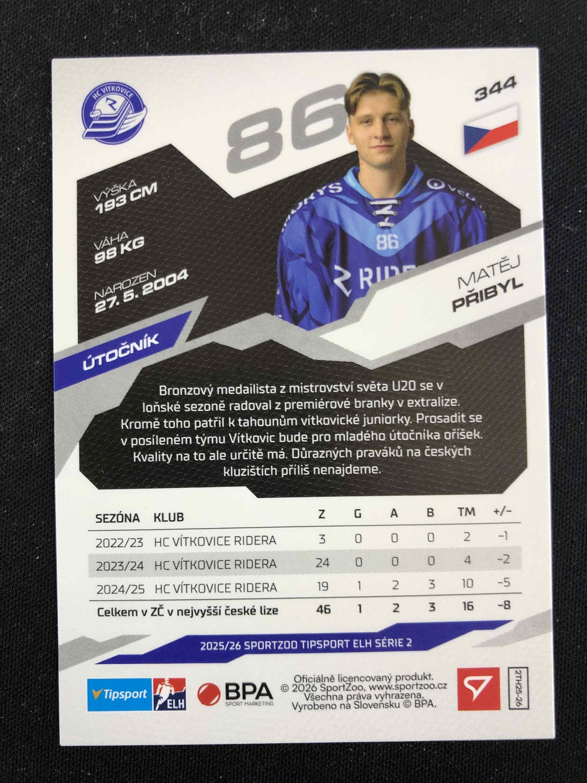Sběratelská karta 2025/2026 Sportzoo Serie 2 Azure Blue 344 Matěj Přibyl Paralel