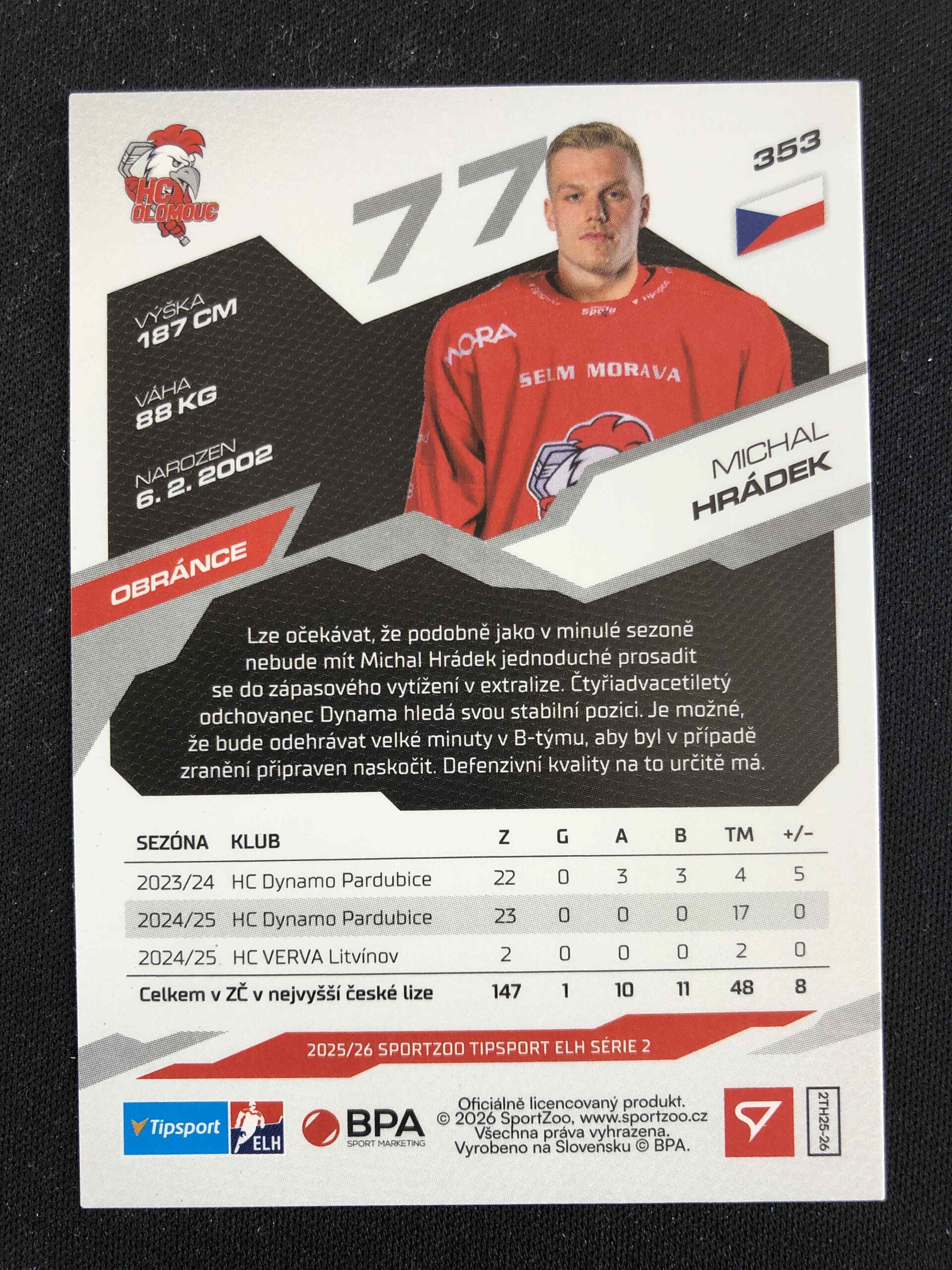 Sběratelská karta 2025/2026 Sportzoo Serie 2 Azure Blue 353 Michal Hrádek Paralel