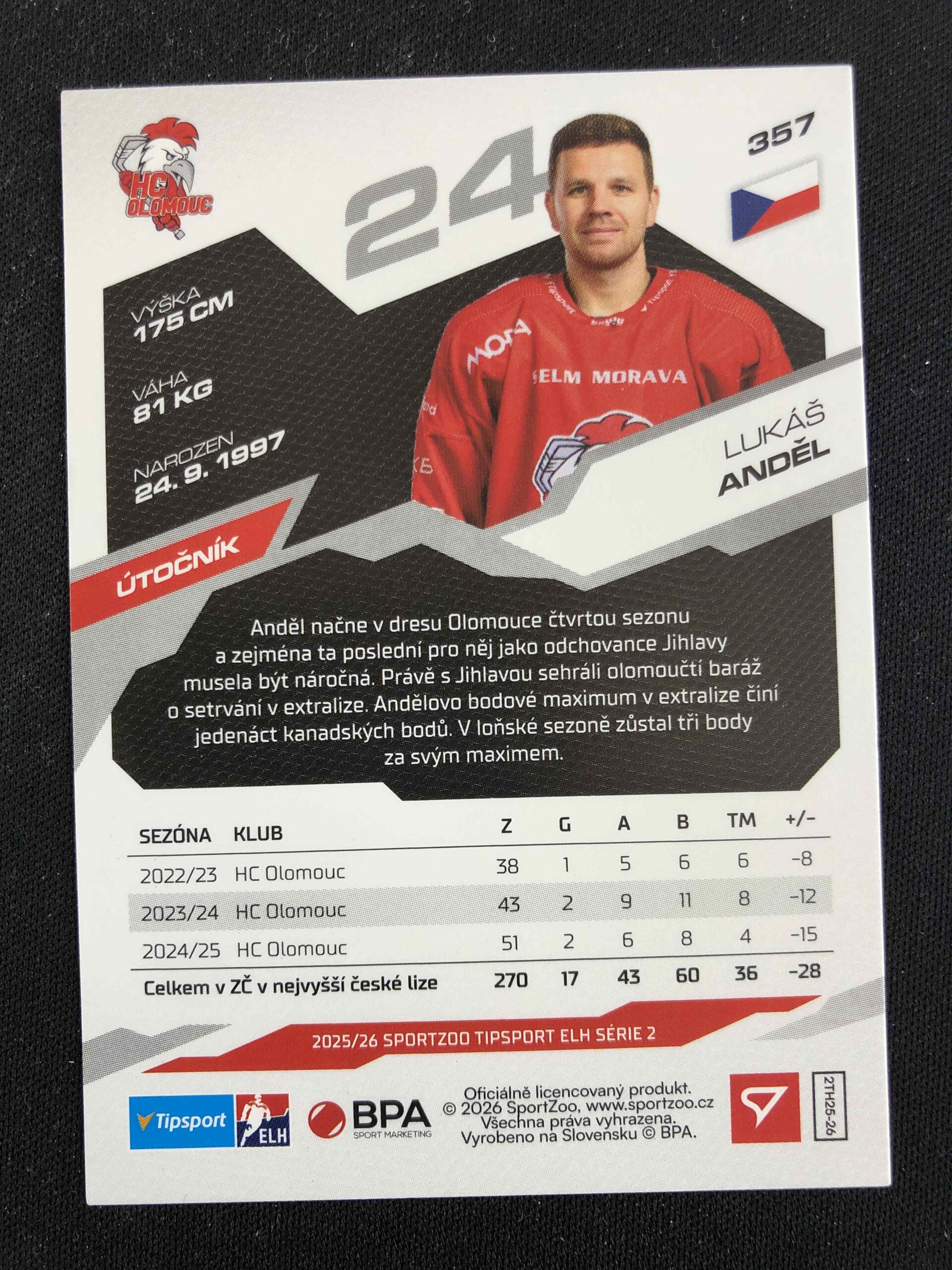 Sběratelská karta 2025/2026 Sportzoo Serie 2 Azure Blue 357 Lukáš Anděl Paralel