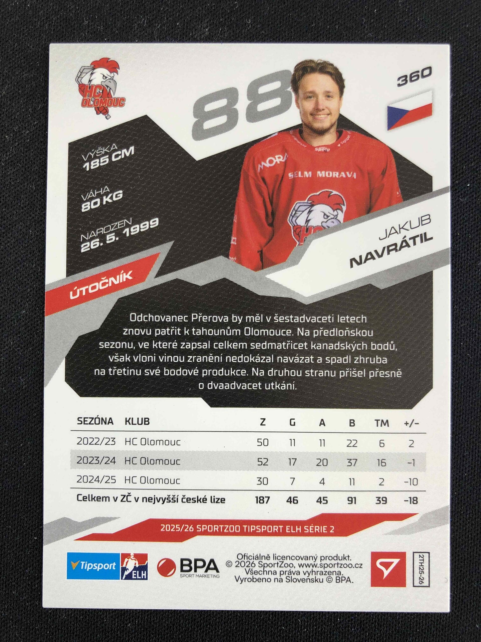 Sběratelská karta 2025/2026 Sportzoo Serie 2 Azure Blue 360 Jakub Navrátil Paralel