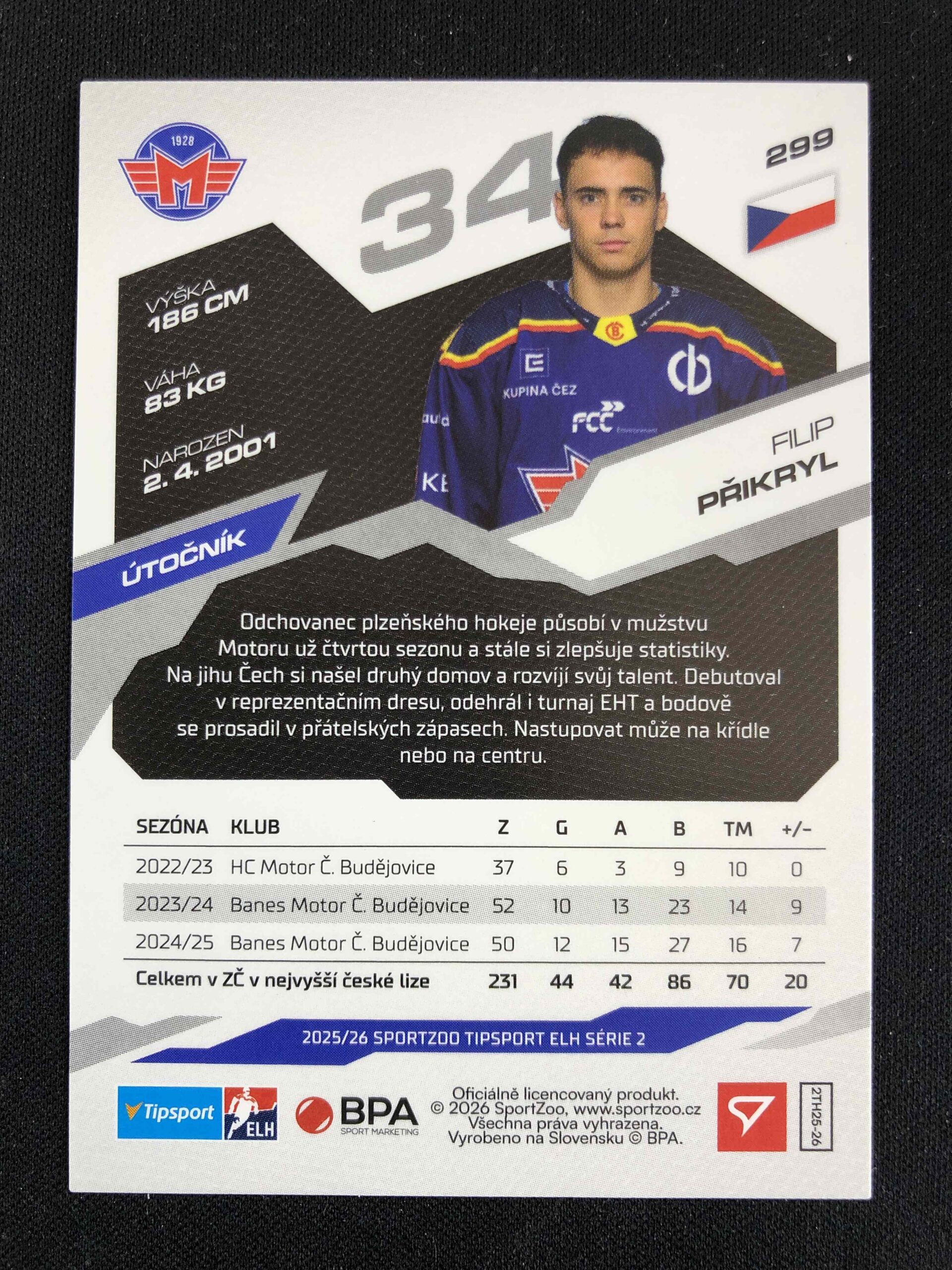 2025/2026 Sportzoo Serie 2 Base 299 Filip Přikryl