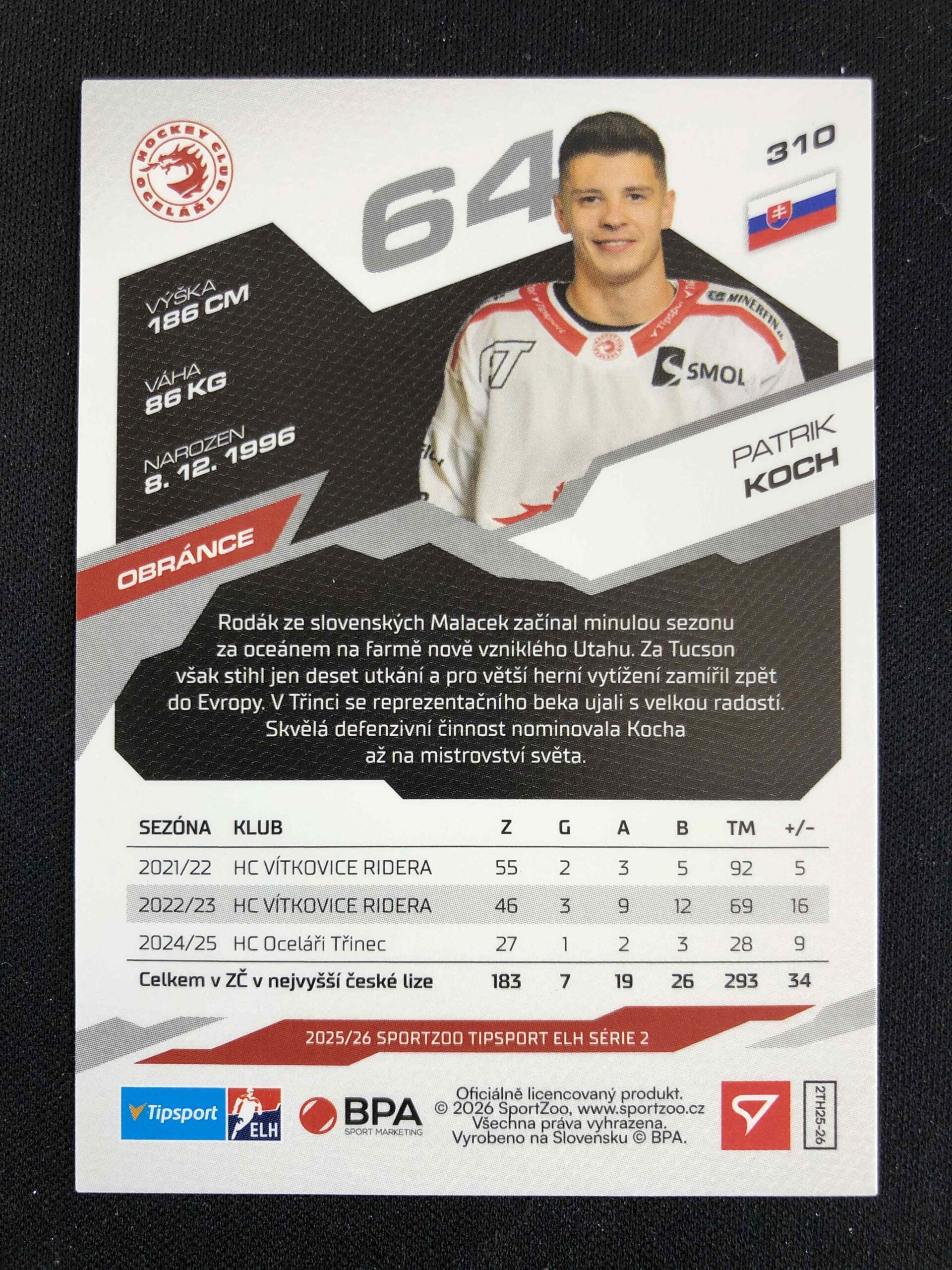 Sběratelská karta 2025/2026 Sportzoo Serie 2 Base 310 Patrik Koch