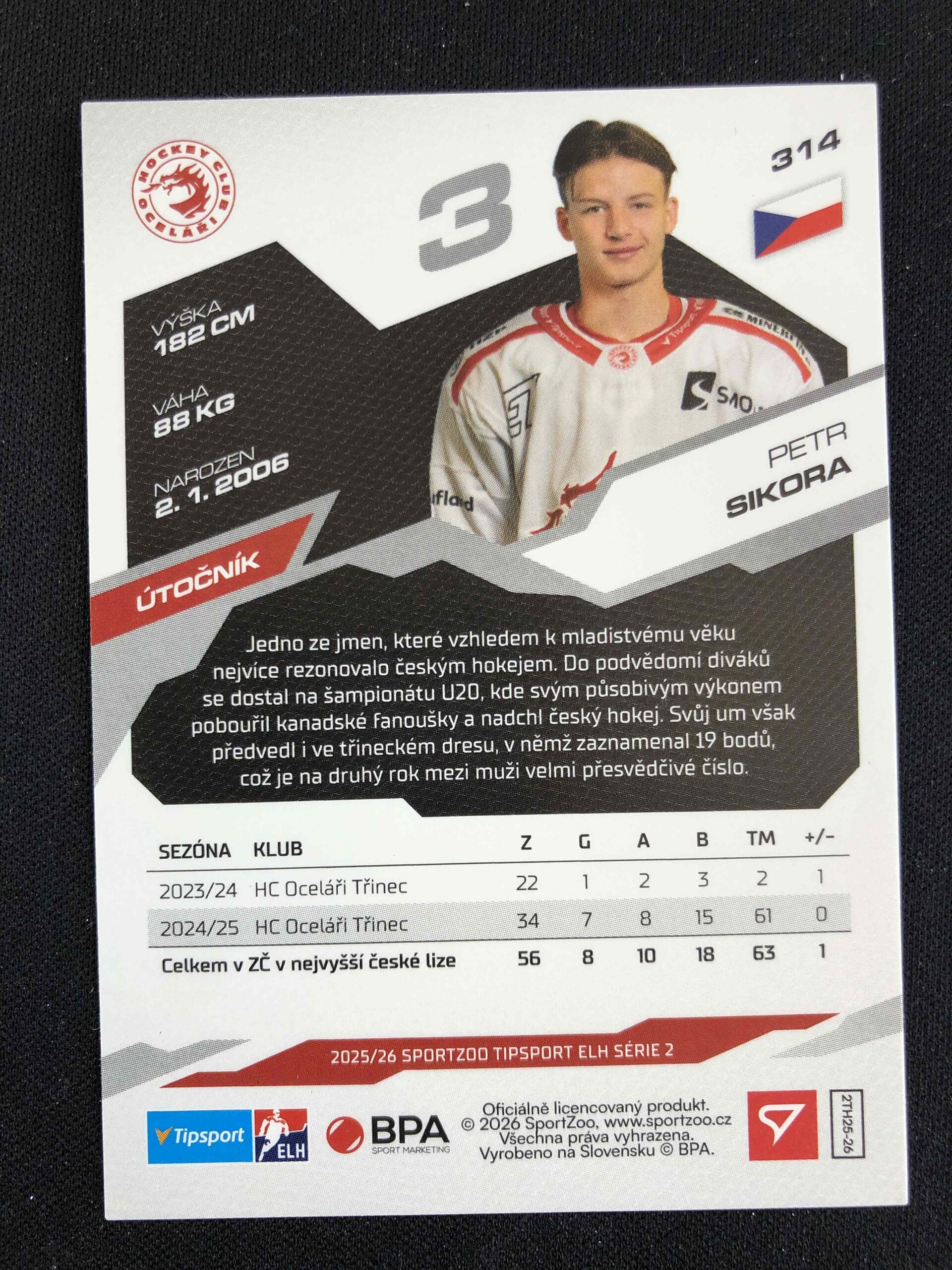 Sběratelská karta 2025/2026 Sportzoo Serie 2 Base 314 Petr Sikora