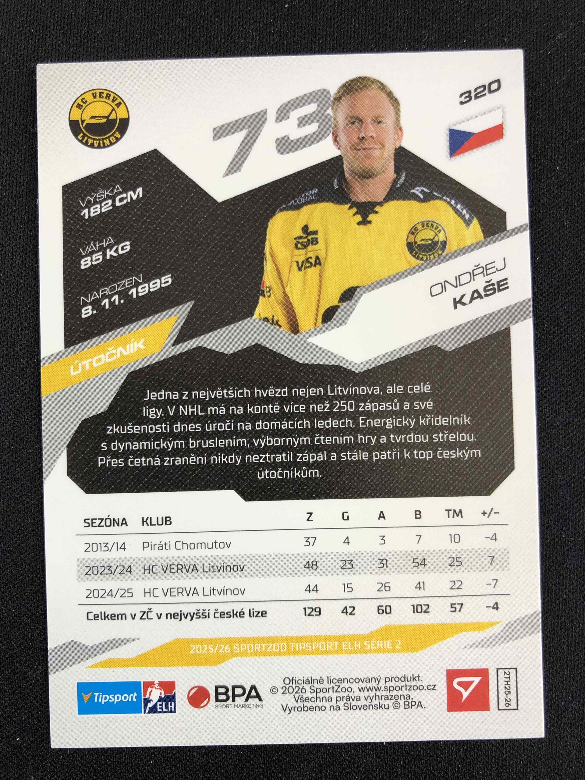 Sběratelská karta 2025/2026 Sportzoo Serie 2 Base 320 Ondřej Kaše