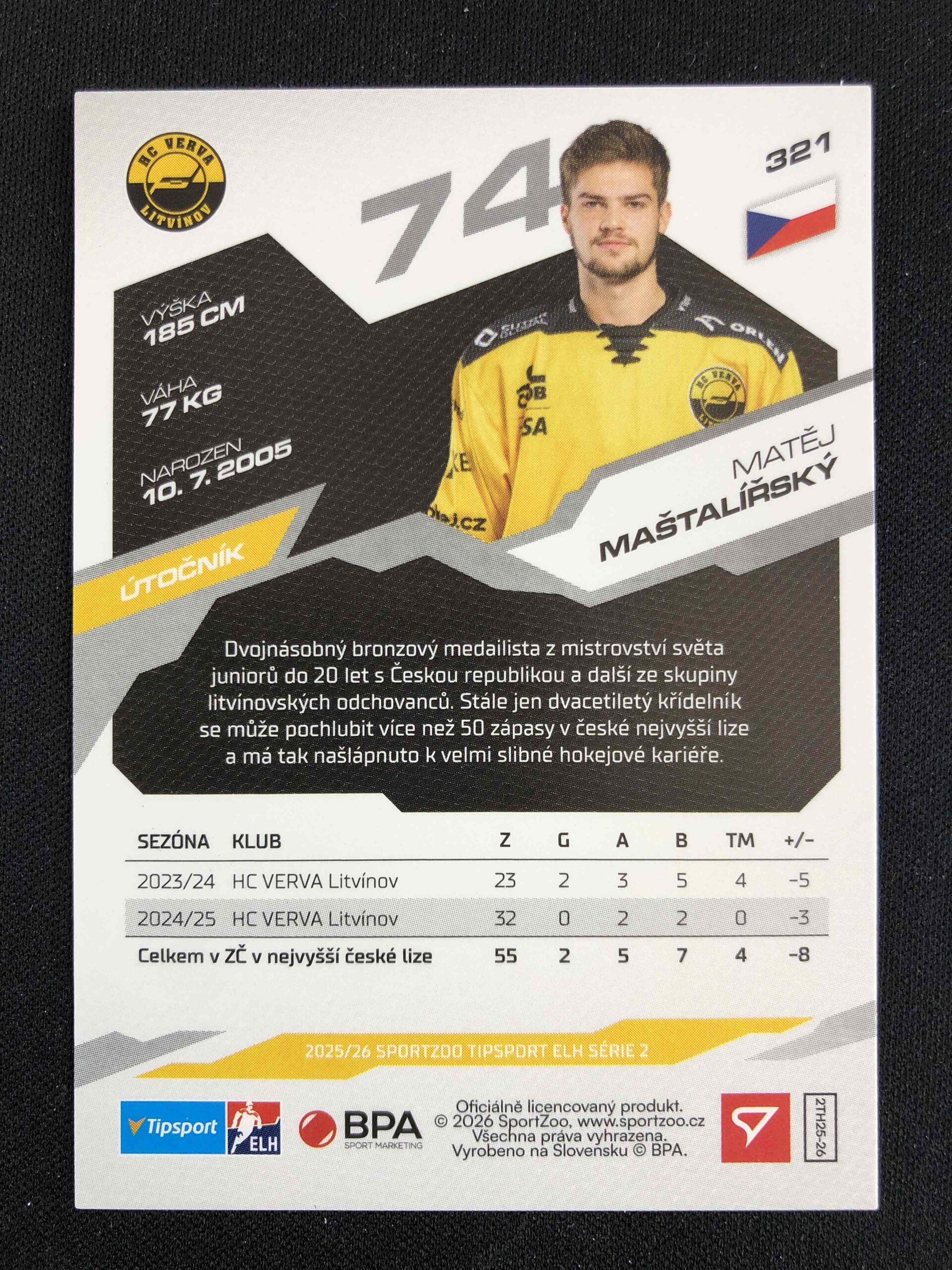 Sběratelská karta 2025/2026 Sportzoo Serie 2 Base 321 Matěj Maštalířský