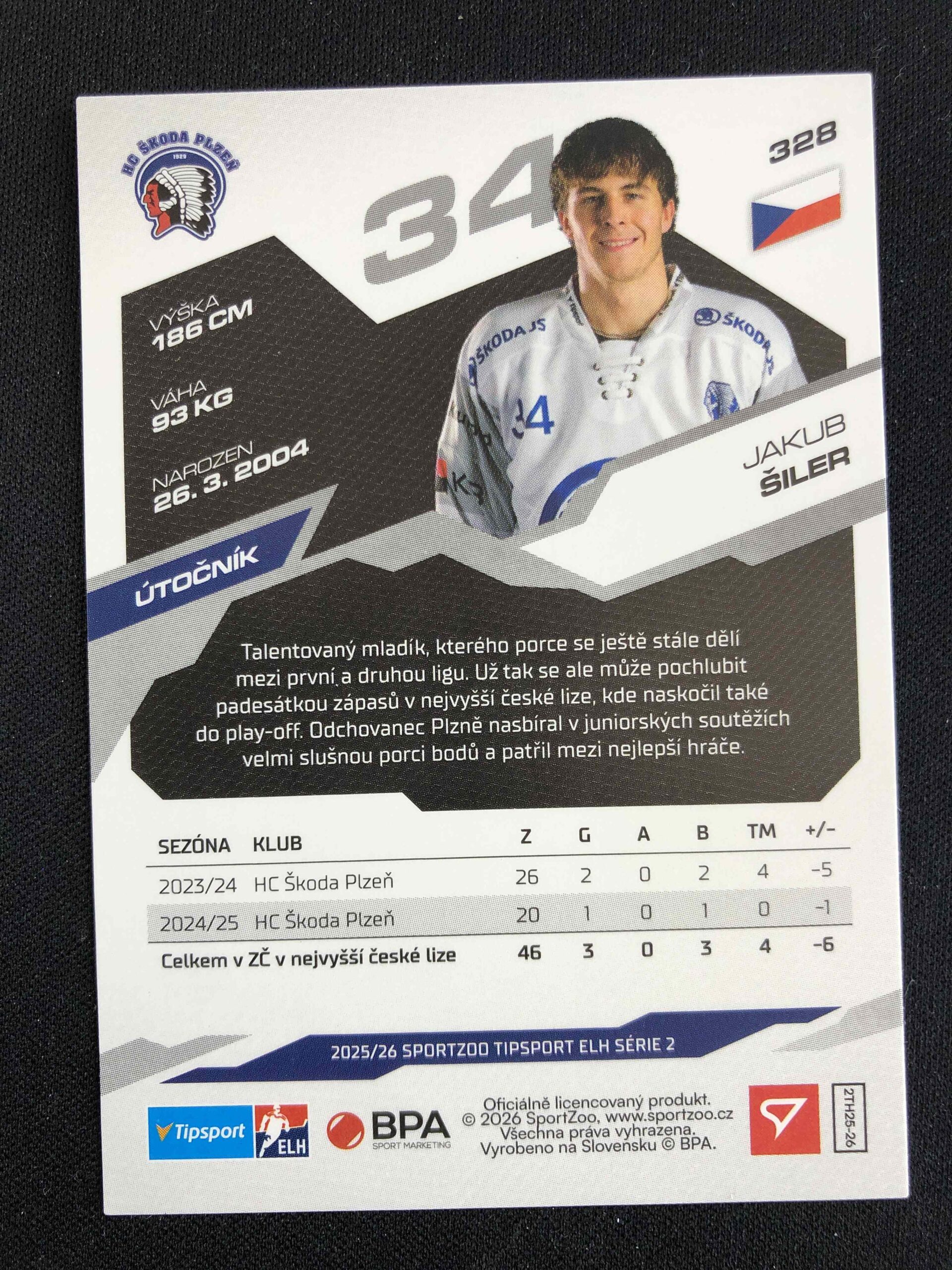 Sběratelská karta 2025/2026 Sportzoo Serie 2 Base 328 Jakub Šiler