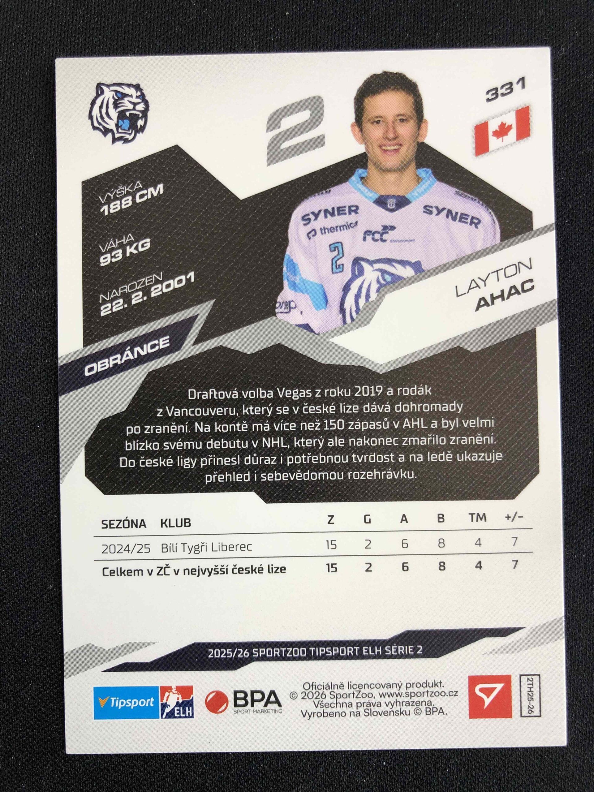 Sběratelská karta 2025/2026 Sportzoo Serie 2 Base 331 Layton Ahac