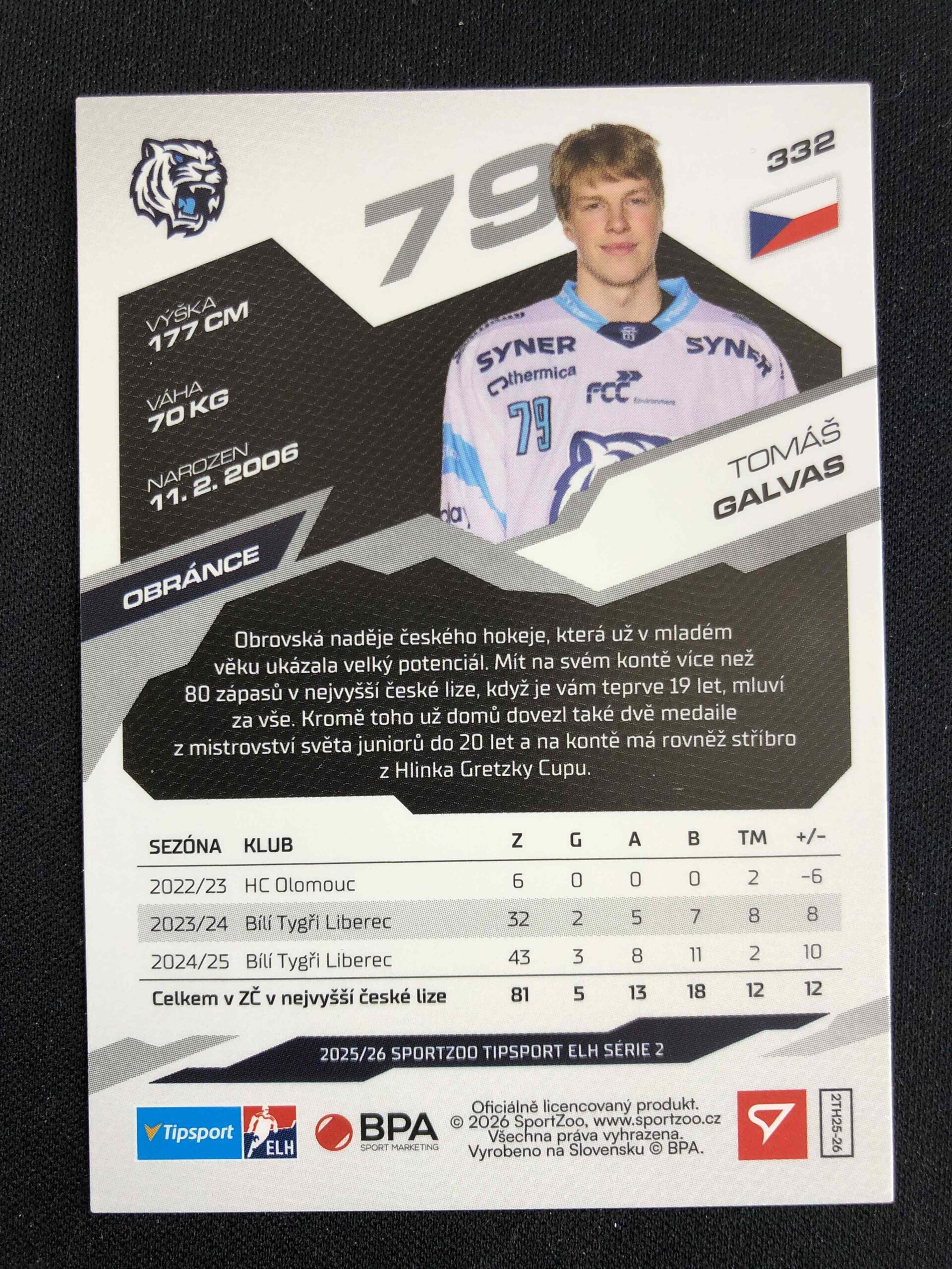 Sběratelská karta 2025/2026 Sportzoo Serie 2 Base 332 Tomáš Galvas