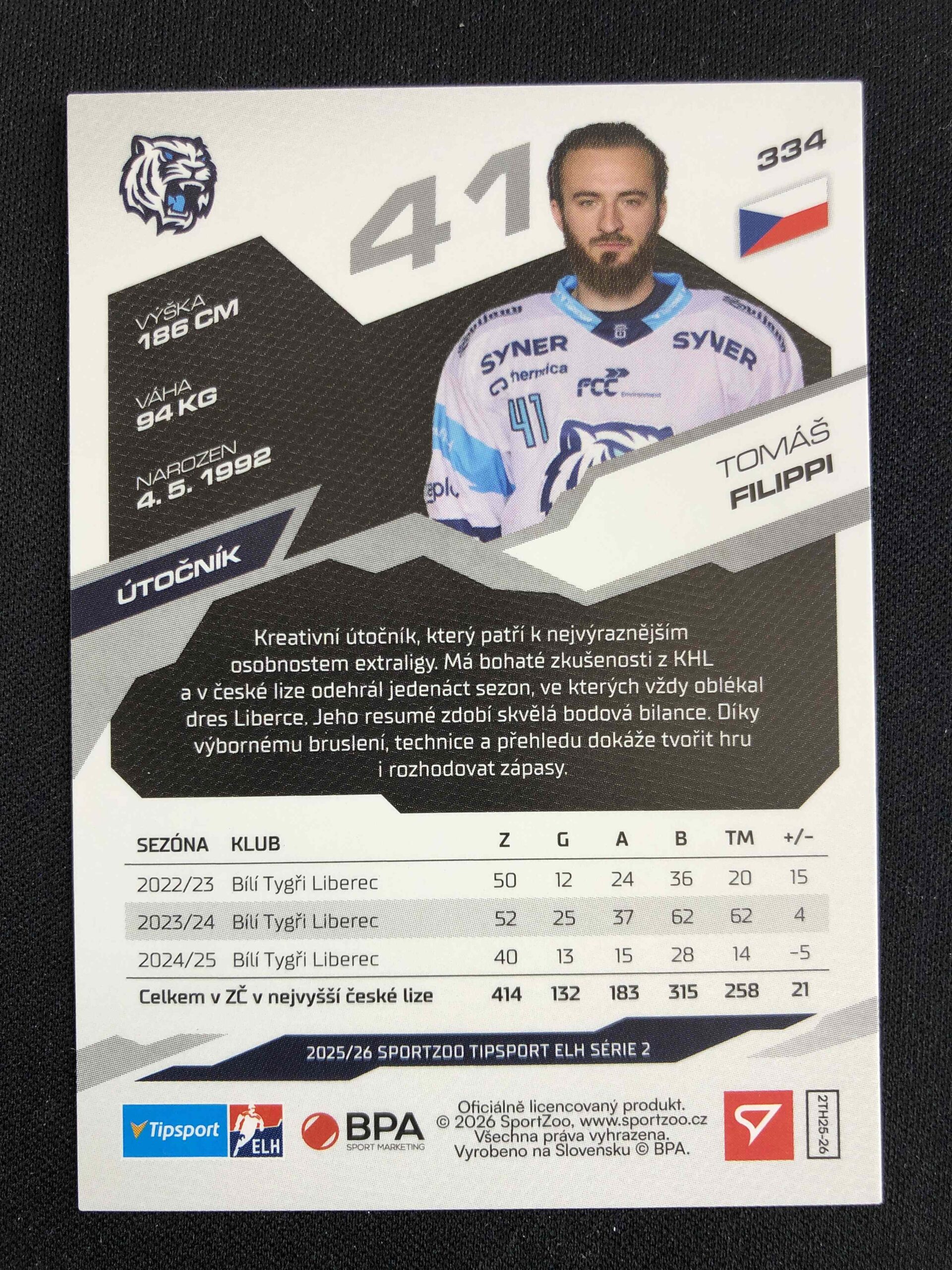 Sběratelská karta 2025/2026 Sportzoo Serie 2 Base 334 Tomáš Filippi