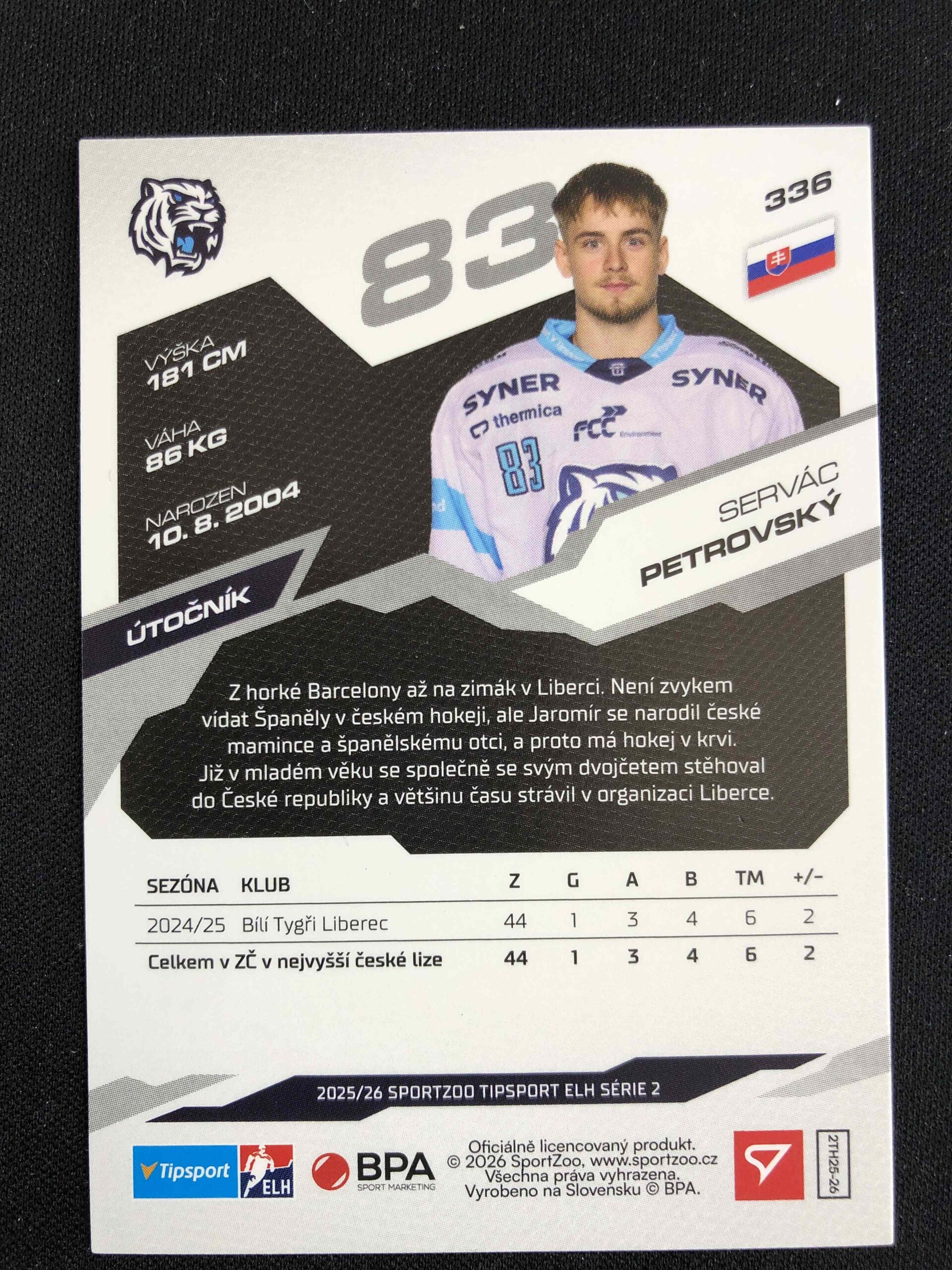 Sběratelská karta 2025/2026 Sportzoo Serie 2 Base 336 Servác Petrovský