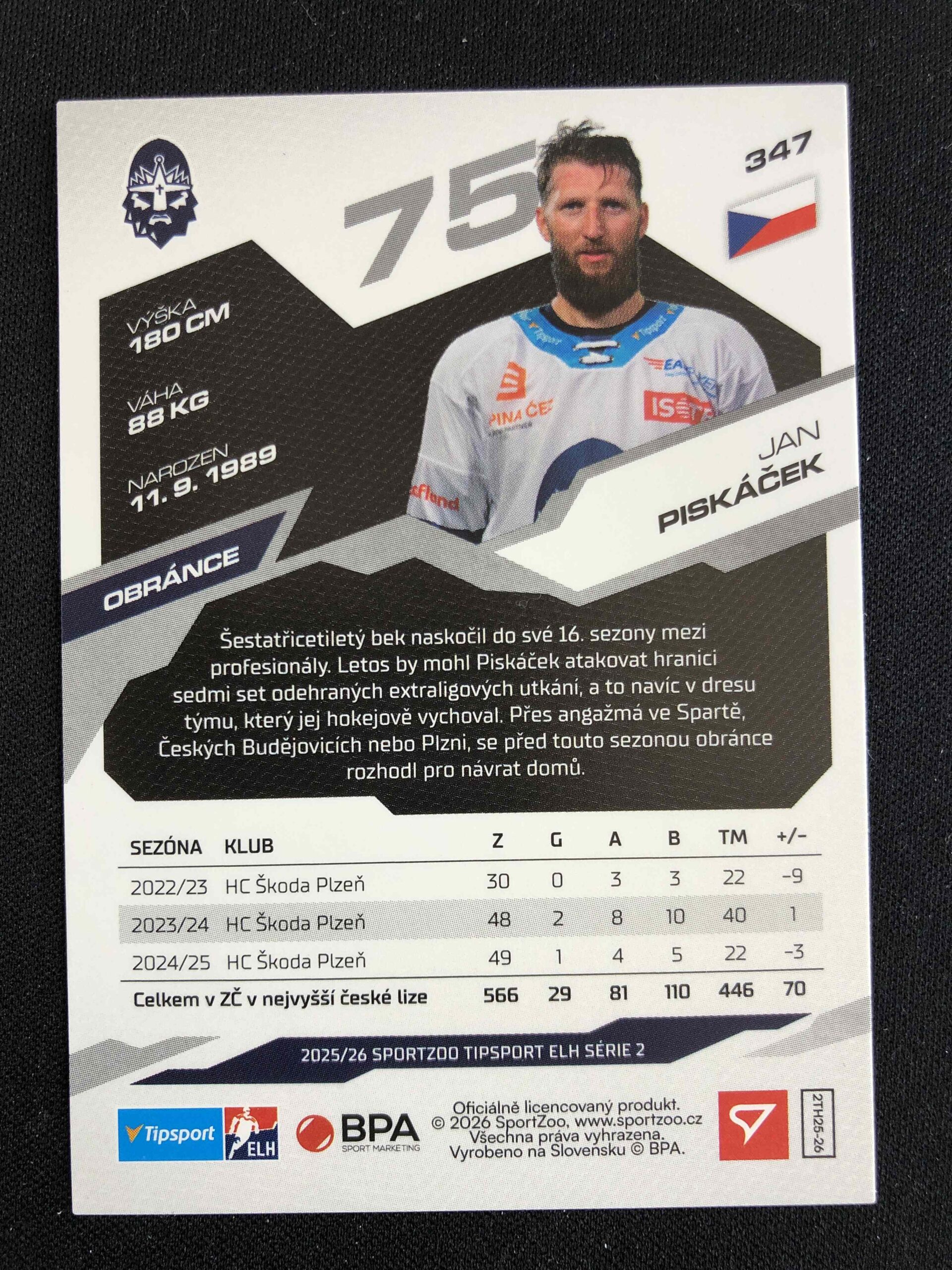 Sběratelská karta 2025/2026 Sportzoo Serie 2 Base 347 Jan Piskáček