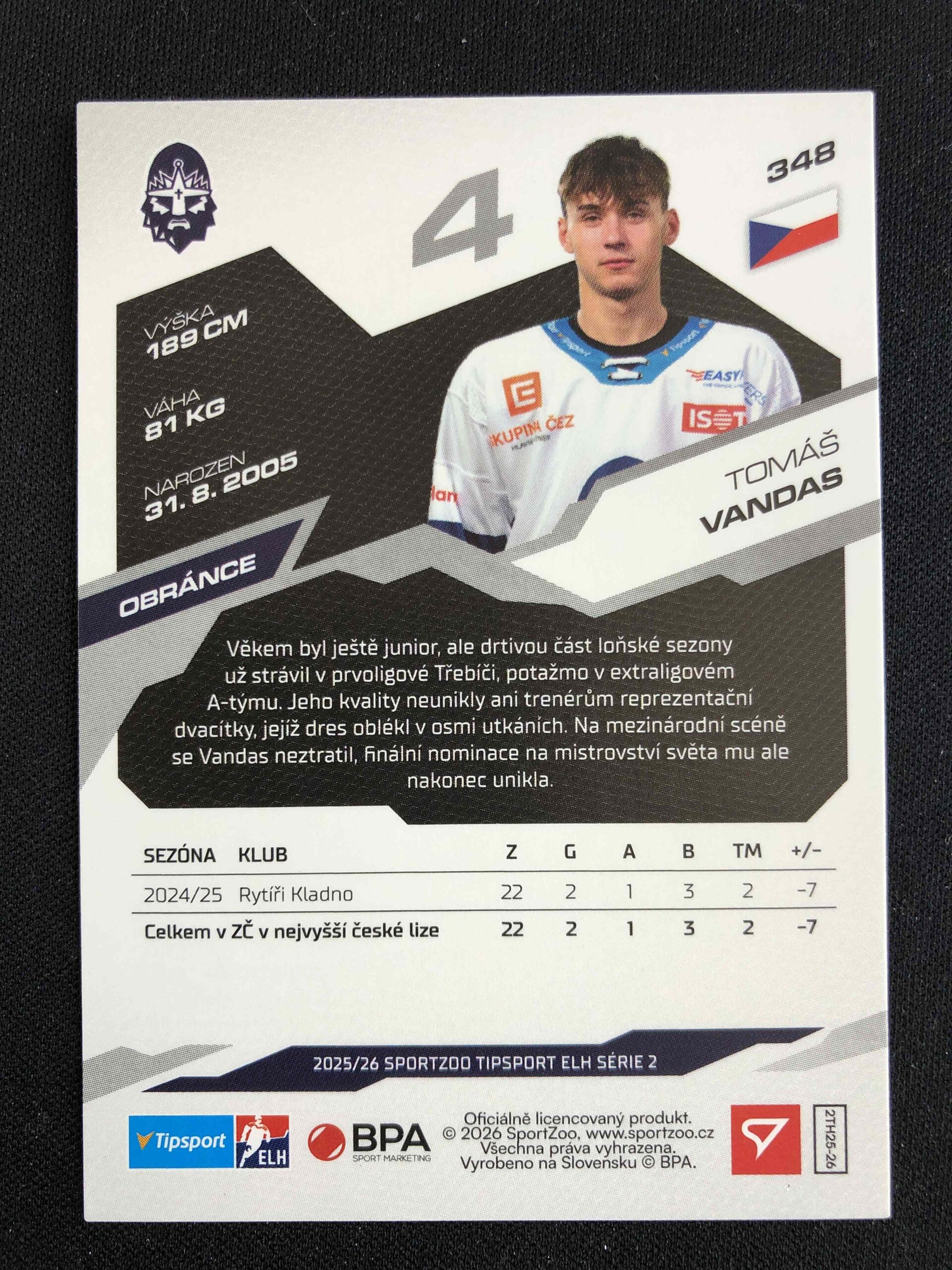 Sběratelská karta 2025/2026 Sportzoo Serie 2 Base 348 Tomáš Vandas