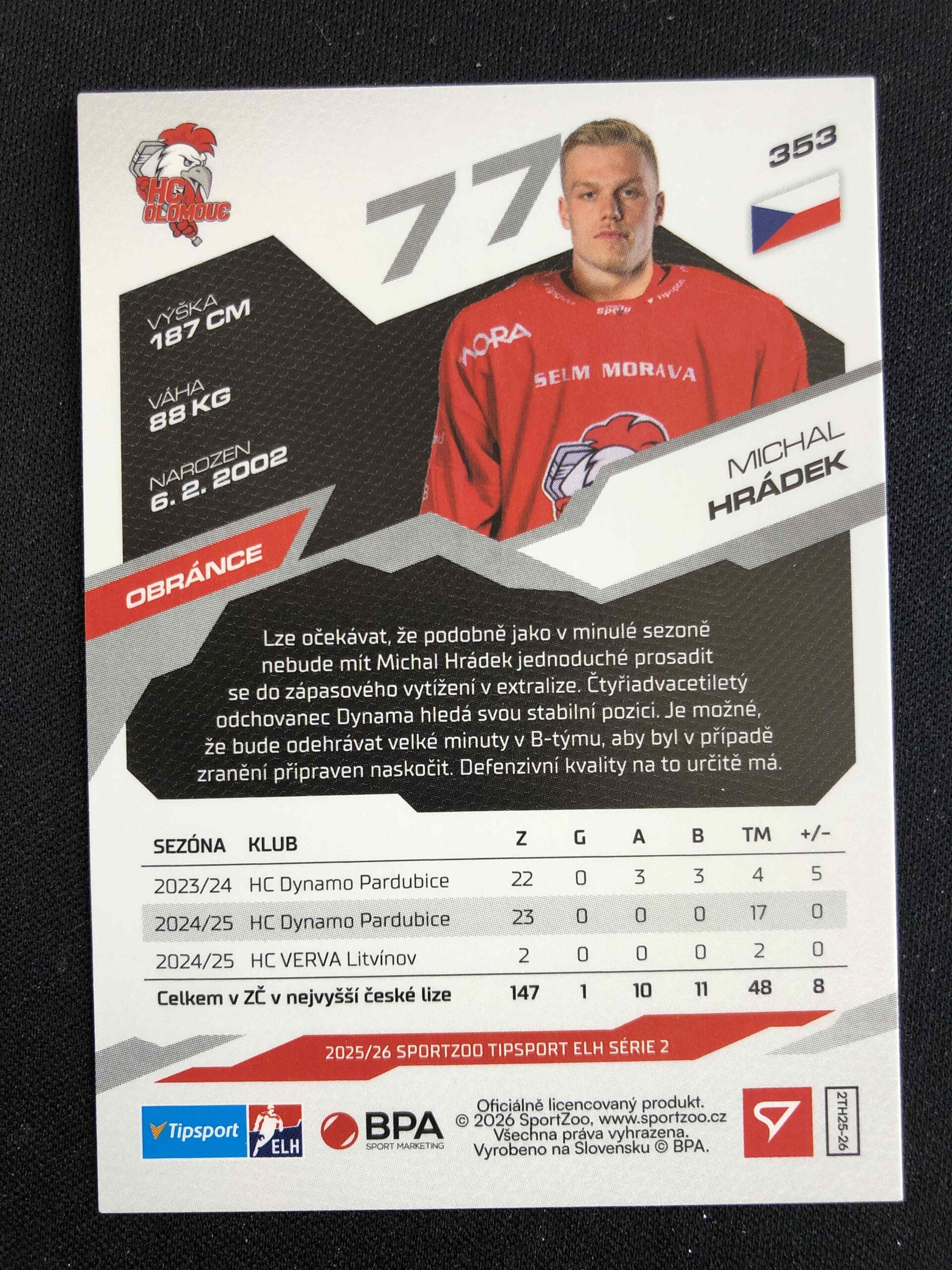 Sběratelská karta 2025/2026 Sportzoo Serie 2 Base 353 Michal Hrádek
