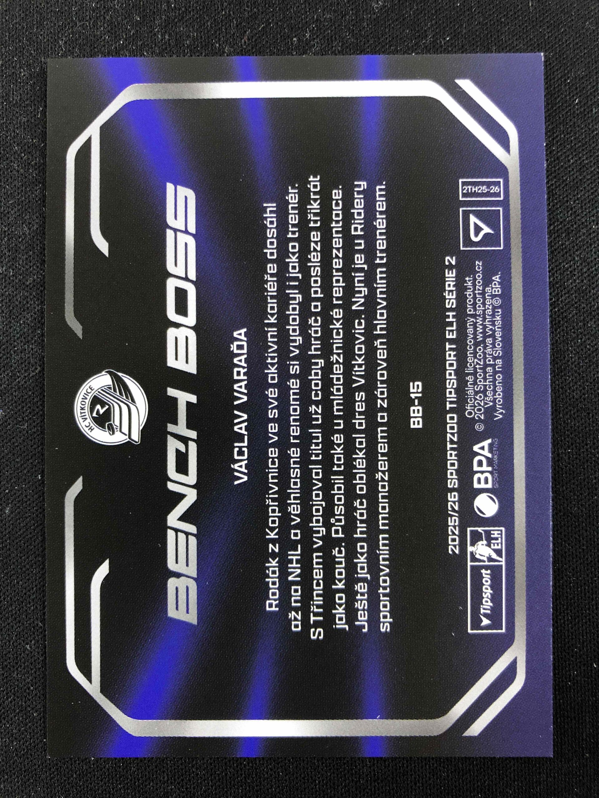 Sběratelská karta 2025/2026 Sportzoo Serie 2 Bench Boss BB-15 Václav Varaďa Inzert