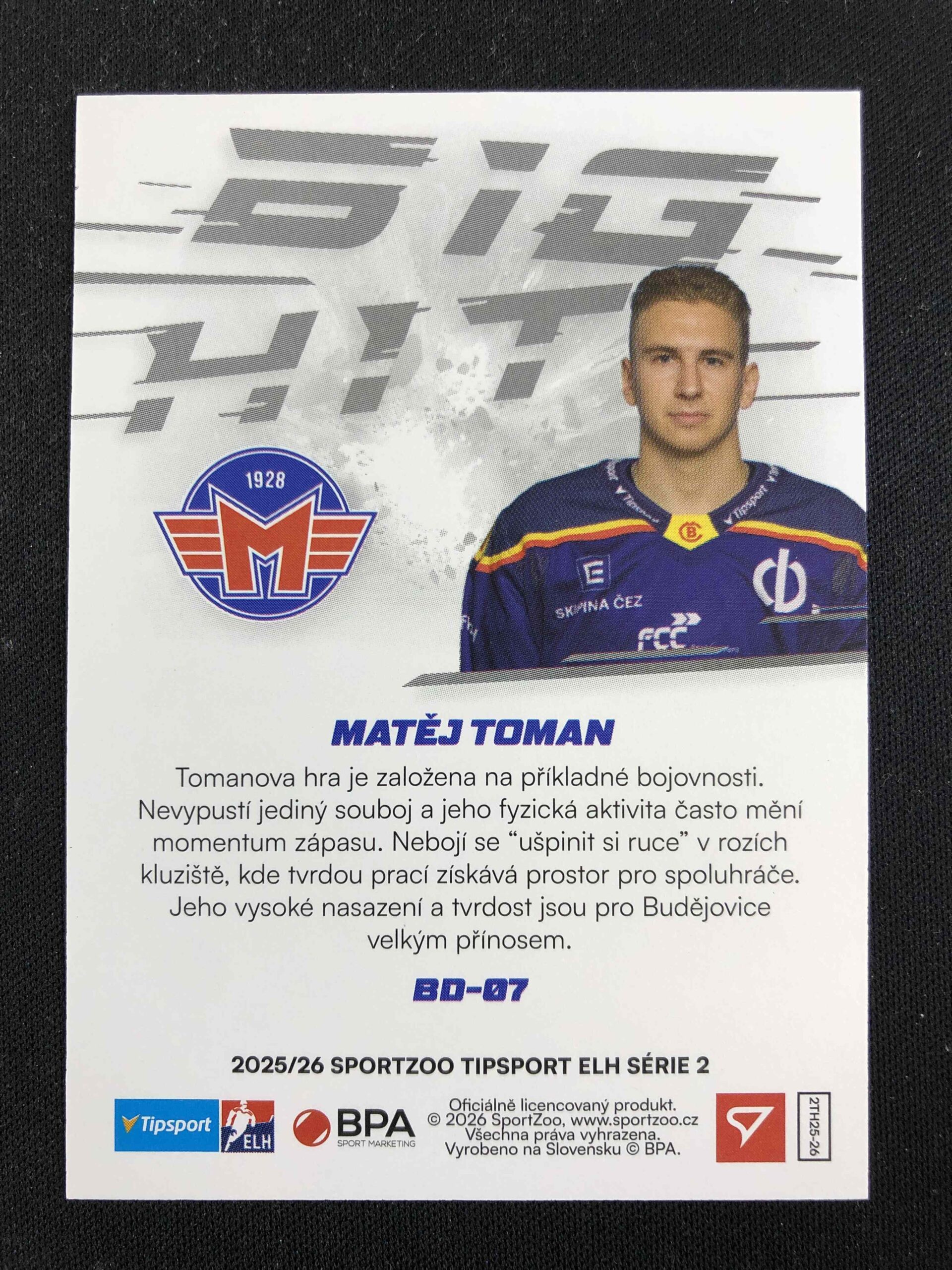 2025/2026 Sportzoo Serie 2 Big Hit BD-07 Matěj Toman Inzert
