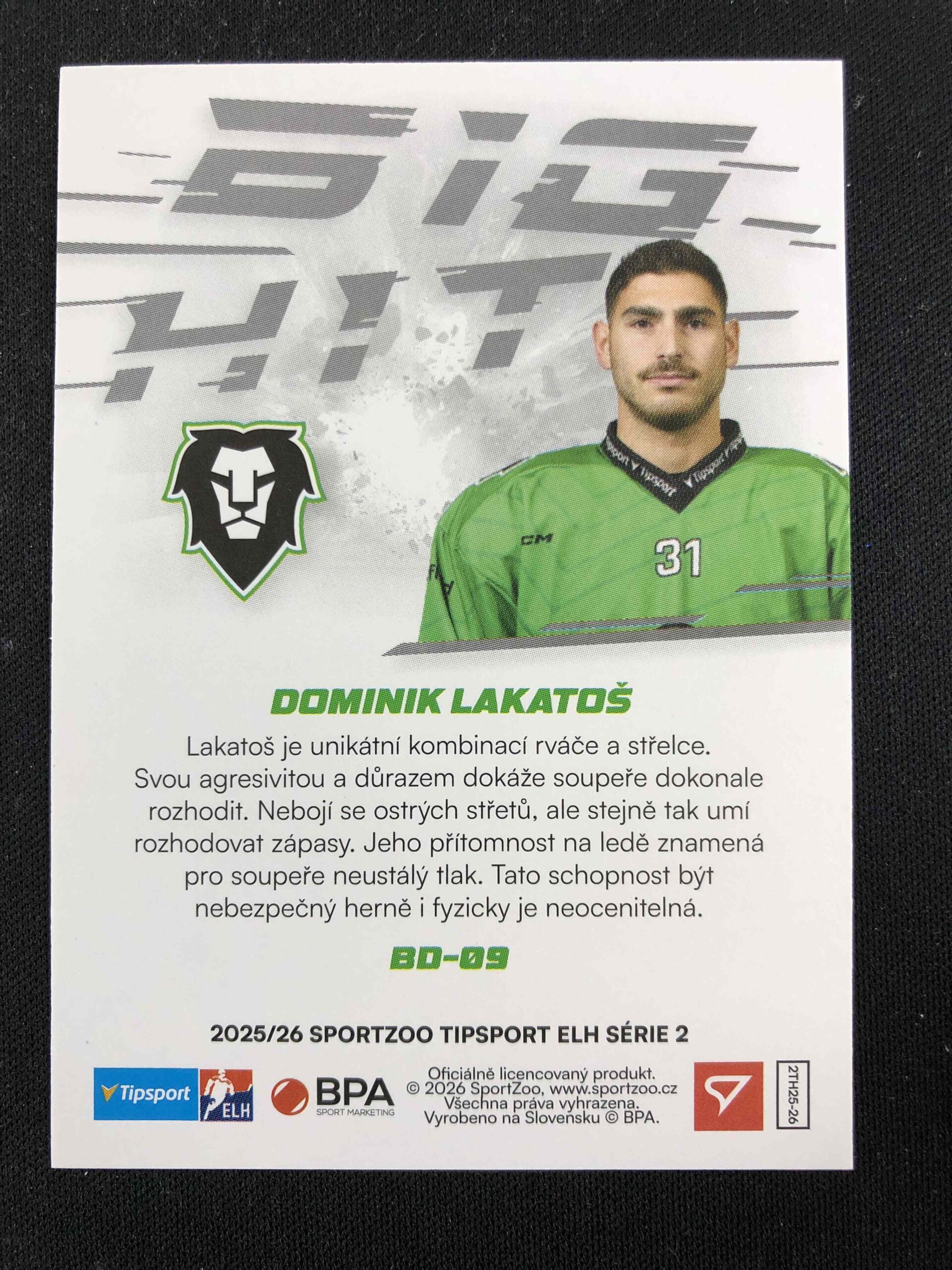 Sběratelská karta 2025/2026 Sportzoo Serie 2 Big Hit BD-09 Dominik Lakatoš Inzert