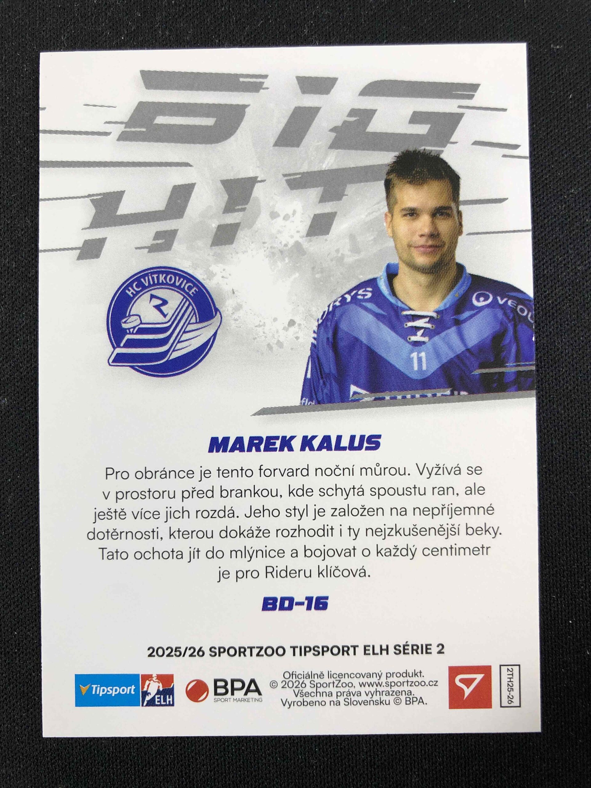 Sběratelská karta 2025/2026 Sportzoo Serie 2 Big Hit BD-16 Marek Kalus Inzert