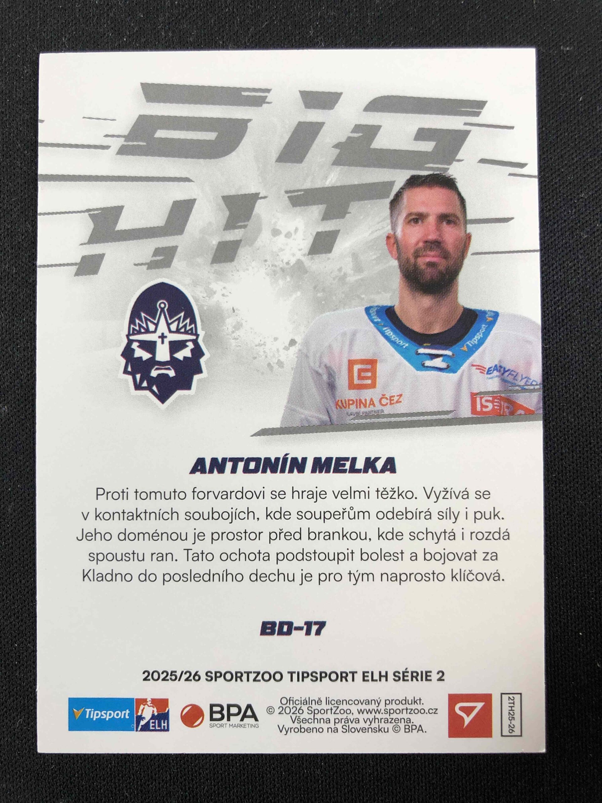 Sběratelská karta 2025/2026 Sportzoo Serie 2 Big Hit BD-17 Antonín Melka Inzert