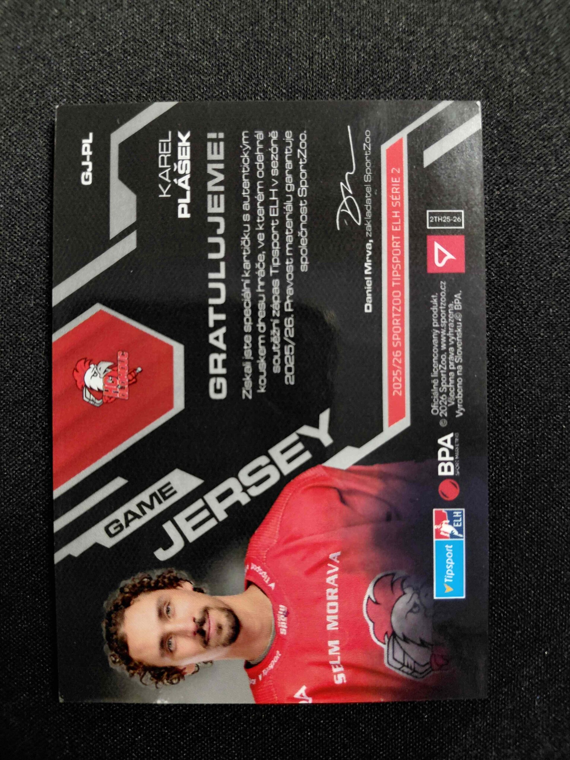 Sběratelská karta 2025/2026 Sportzoo Serie 2 Game Jersey Silver GJ-PL Karel Plášek Jersey 59/85