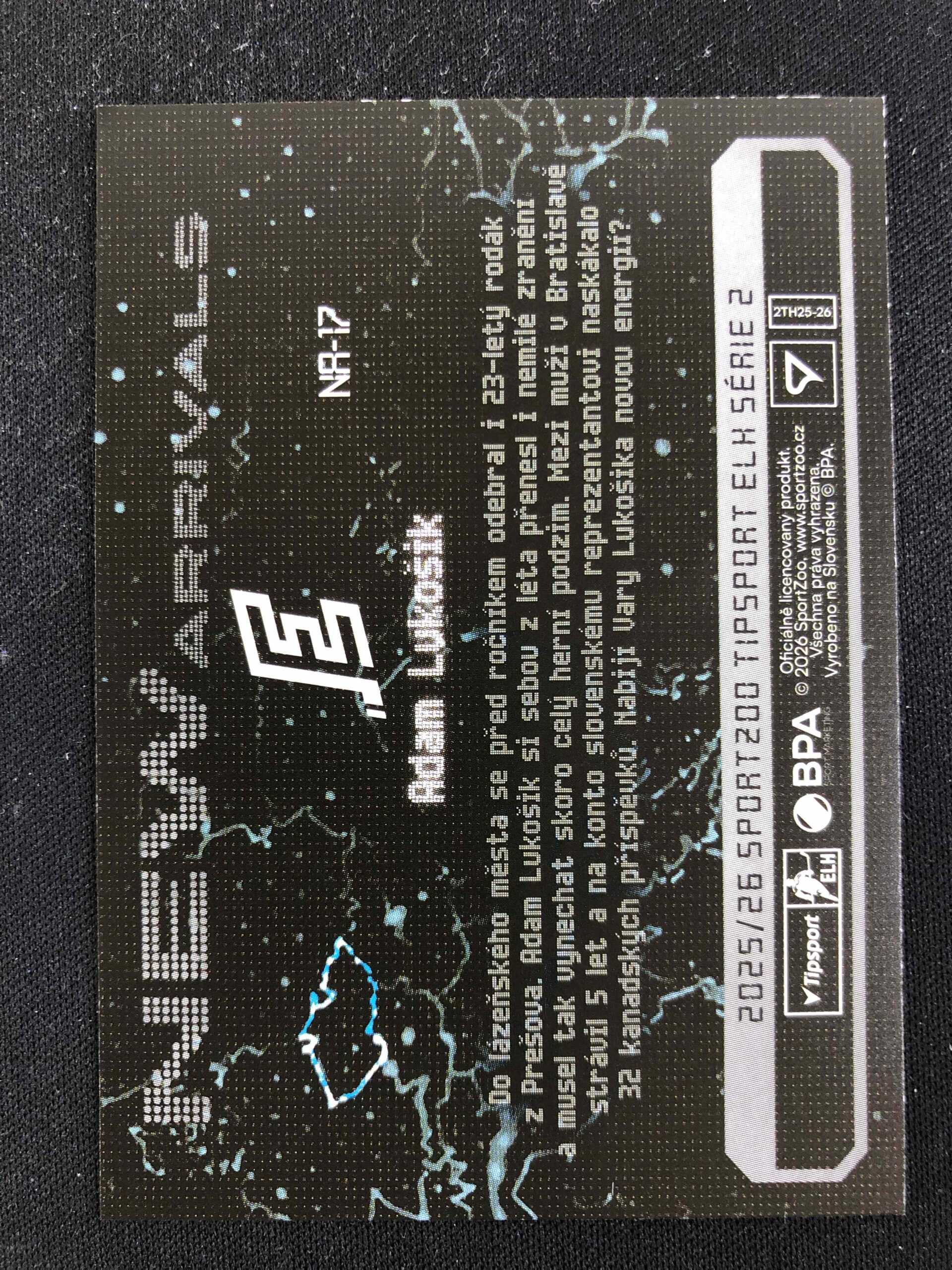 Sběratelská karta 2025/2026 Sportzoo Serie 2 New Arrivals NA-17 Adam Lukošik Inzert