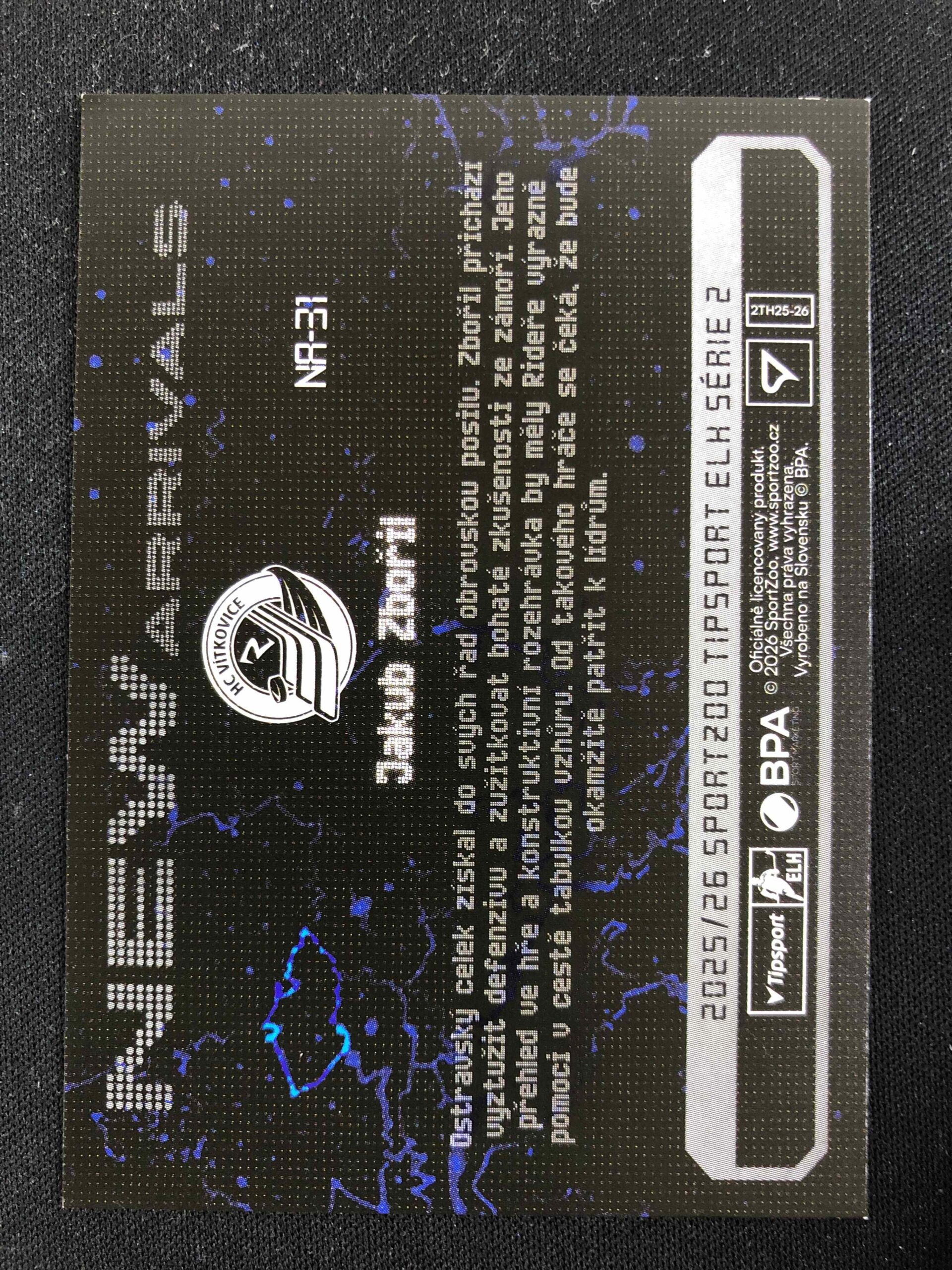 Sběratelská karta 2025/2026 Sportzoo Serie 2 New Arrivals NA-31 Jakub Zbořil Inzert
