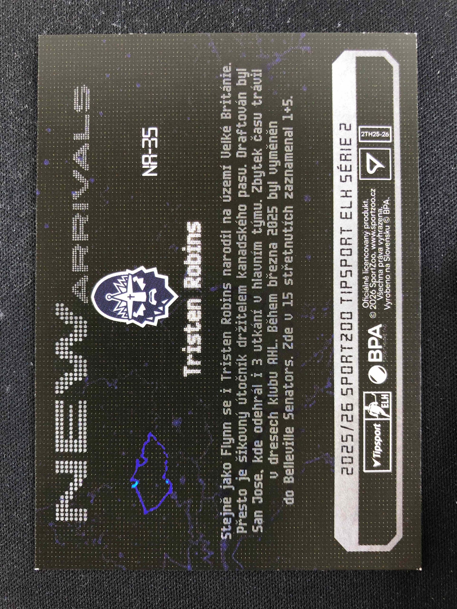 Sběratelská karta 2025/2026 Sportzoo Serie 2 New Arrivals NA-35 Tristen Robins Inzert