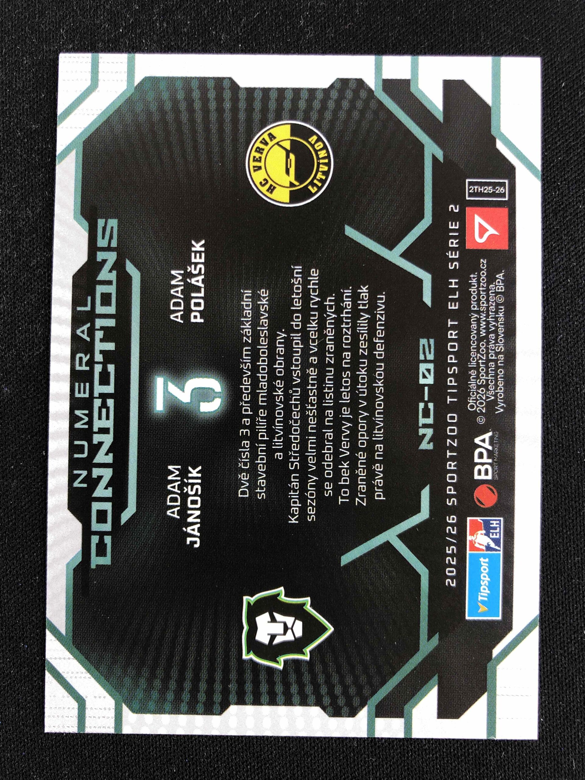 Sběratelská karta 2025/2026 Sportzoo Serie 2 Numeral Connections NC-02 Jánošík, Polášek Inzert