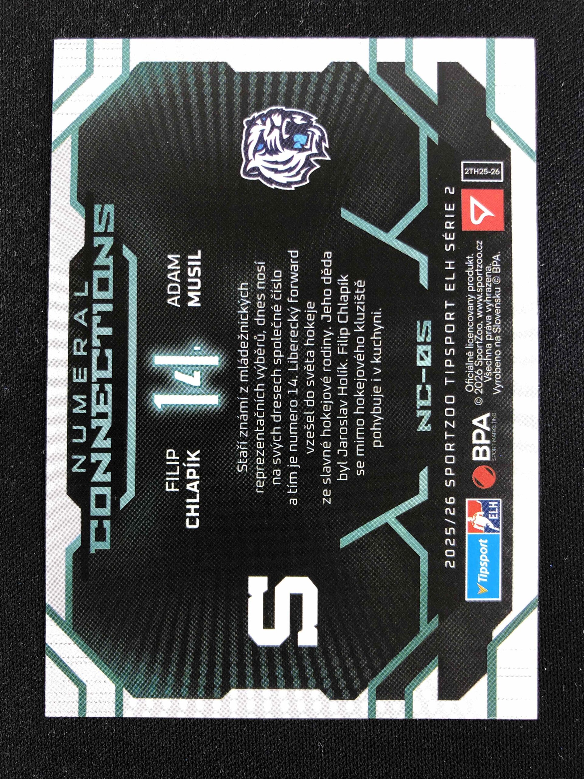Sběratelská karta 2025/2026 Sportzoo Serie 2 Numeral Connections NC-05 Chlapík, Musil Inzert